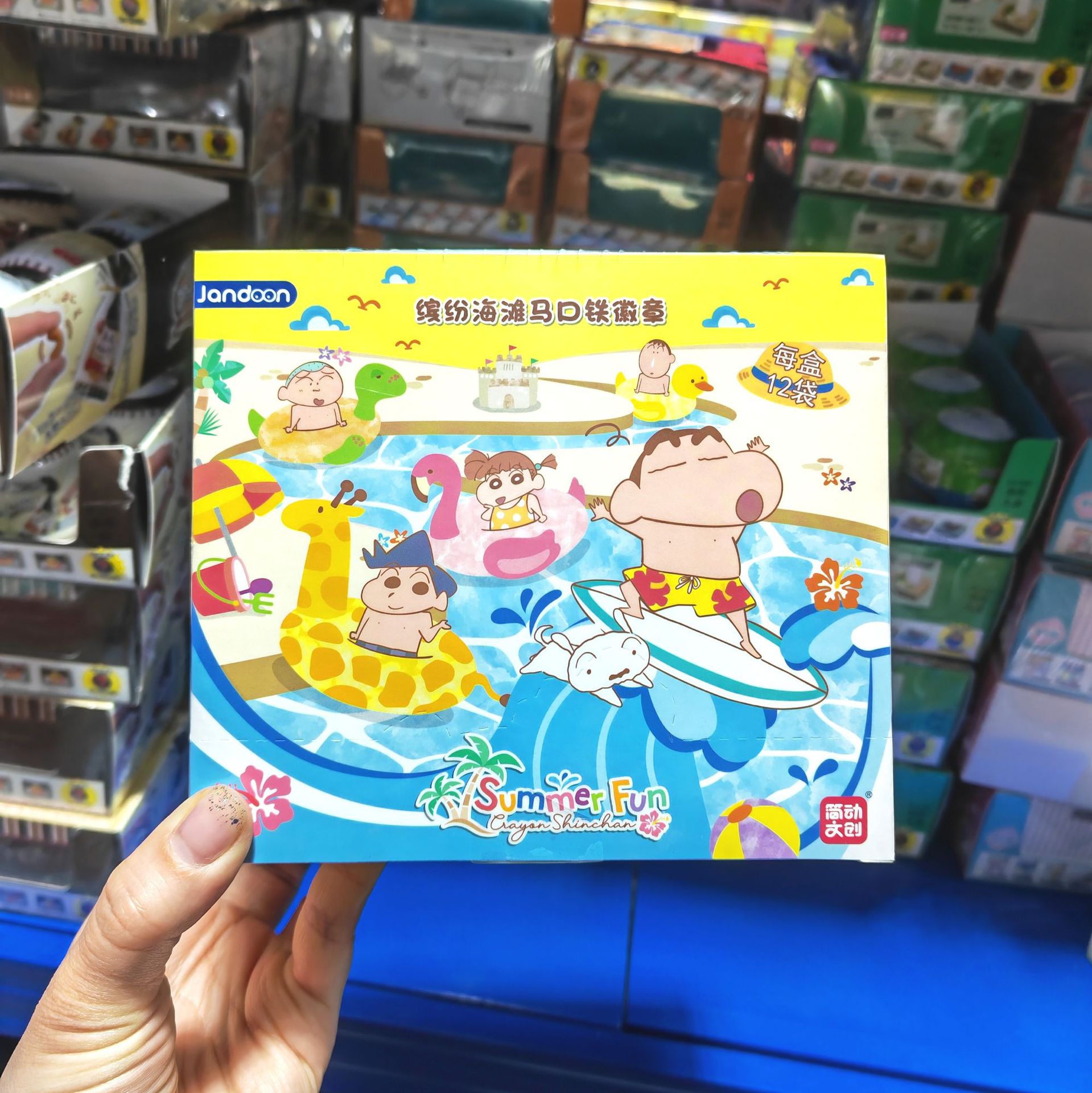 • JD-68809R * 12 tinplate 배지-화려한 해변 (크레용 샤오 신) [12 엔드 박스]