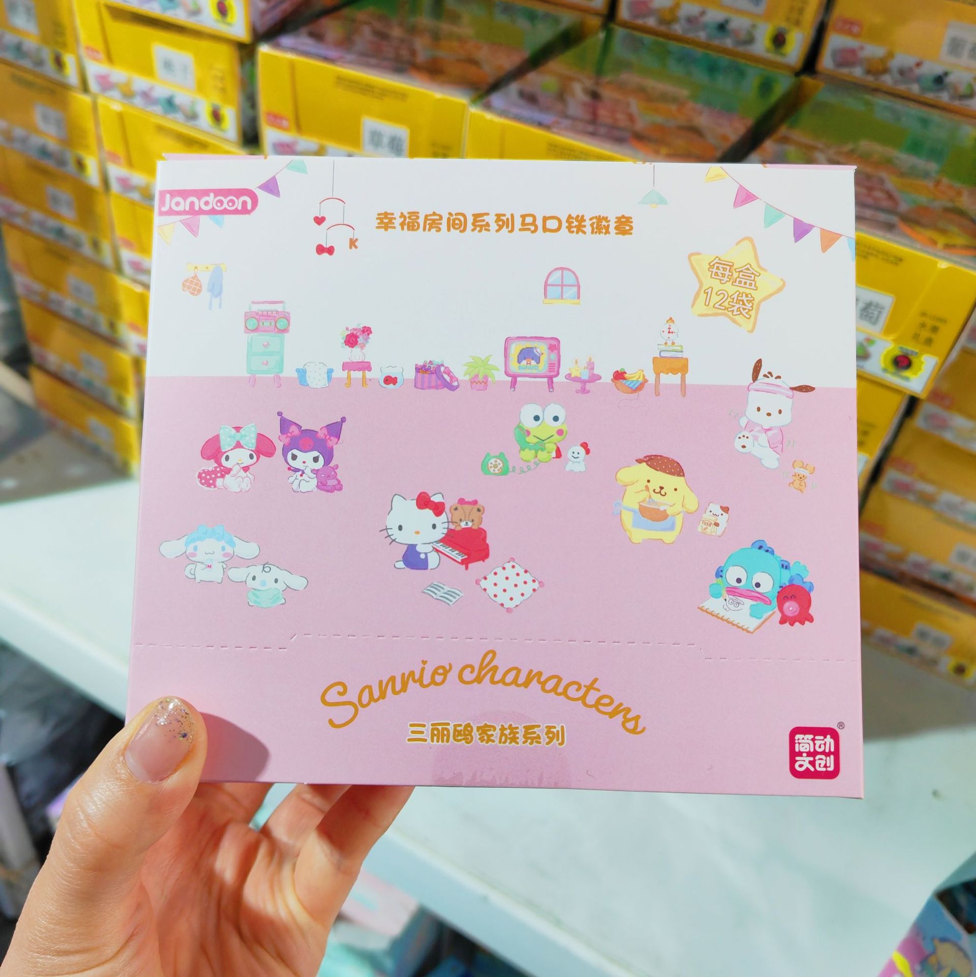 • JD-68809S * 12 틴 플레이트 배지-해피 룸 (산리오) [12 엔드 박스]