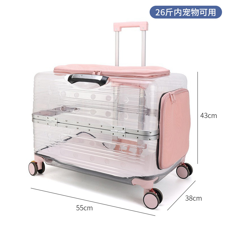 • 애완동물 트롤리 케이스 - 광택 있고 완전히 투명한 핑크색