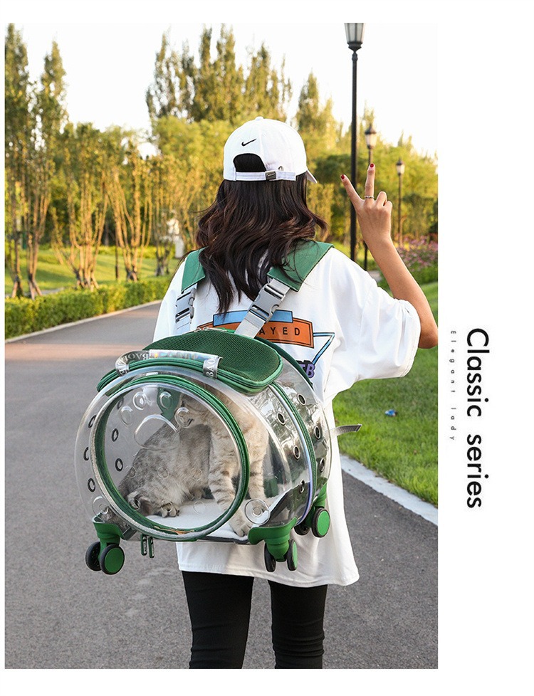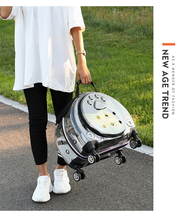 작은 애완 동물 트롤리 케이스 투명 더블 어깨 고양이 가방 가방 통기성 개 애완 동물 상자 공간 캡슐 국경 도매스토어 가기