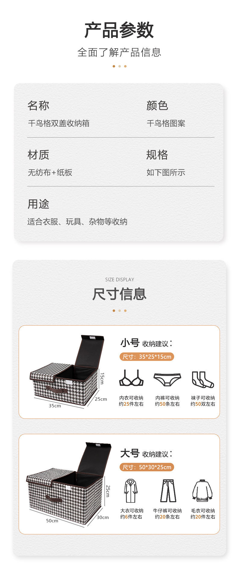 다용도 수납 분리형 정리함 사우전드그레인 이중 뚜껑 이중 칸 수납함 접이식 옷 속옷 정리함