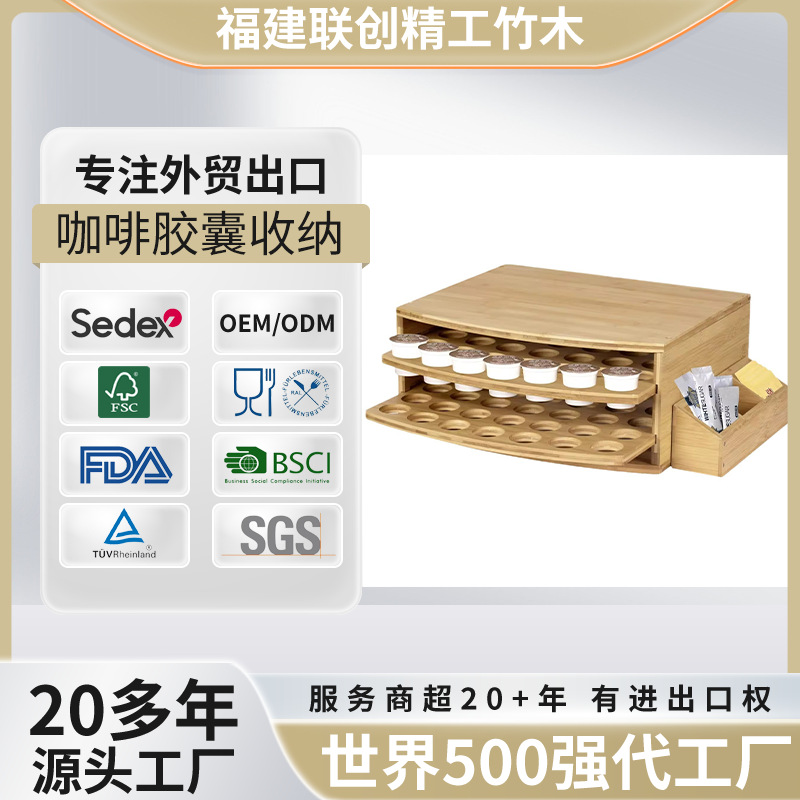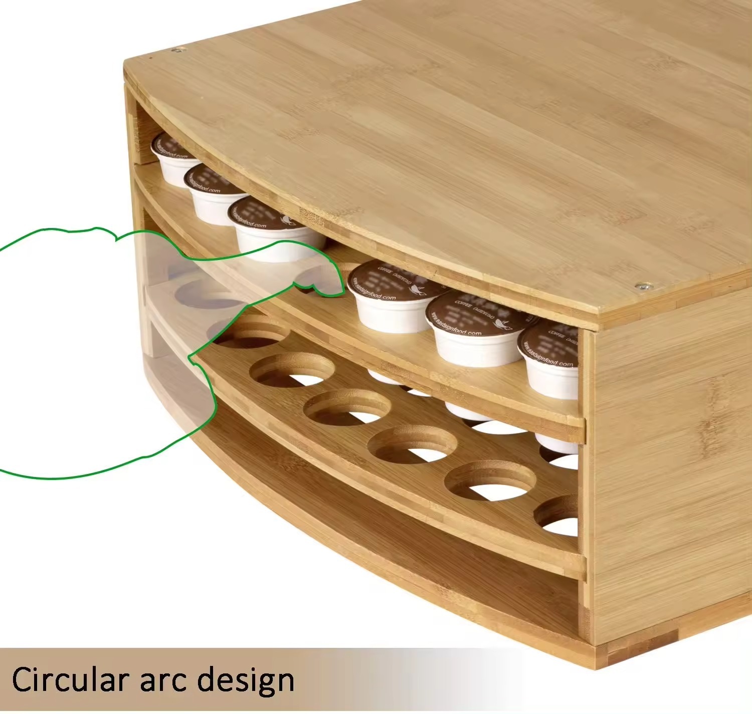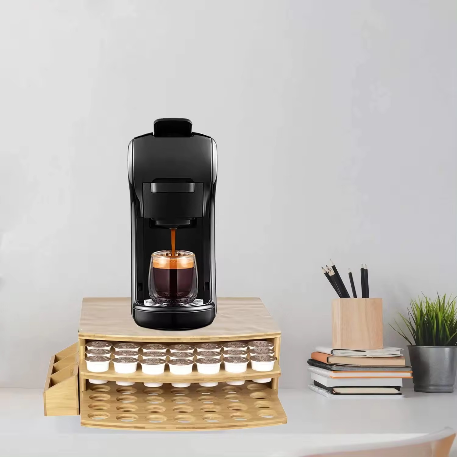 대나무 커피 머신 베이스 더블 레이어 Drawable 커피 캡슐 보관 상자 대나무 커피 머신 디스플레이 스탠드 액세서리스토어 가기