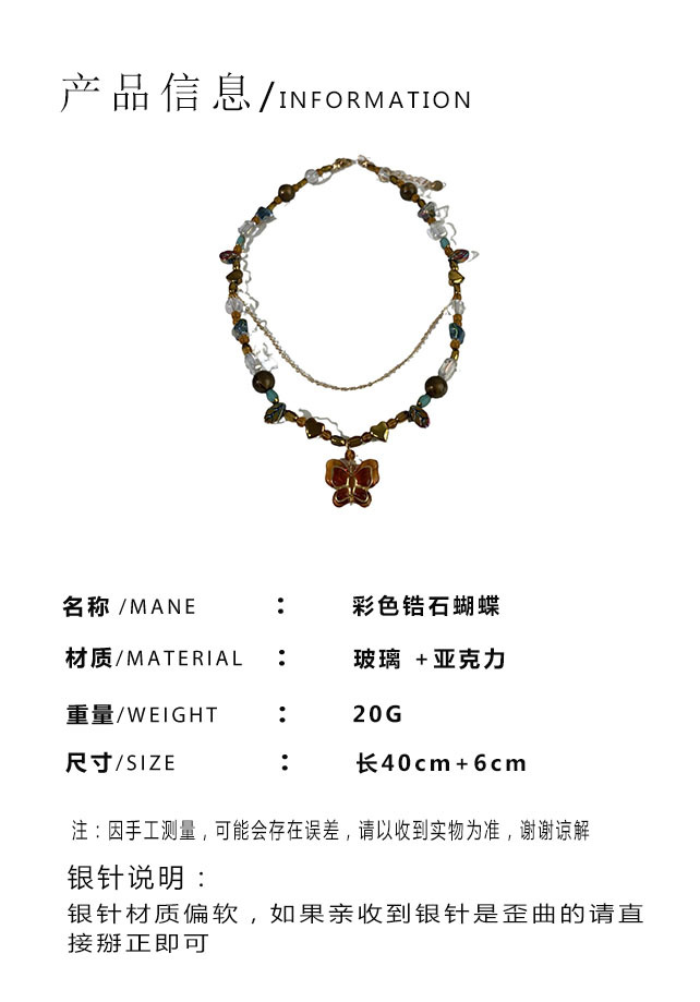 민족 컬러 지르콘 나비 펜던트 목걸이 봄과 여름 빛 럭셔리 틈새 초커 높은 수준의 모든 성냥 쇄골 체인스토어 가기