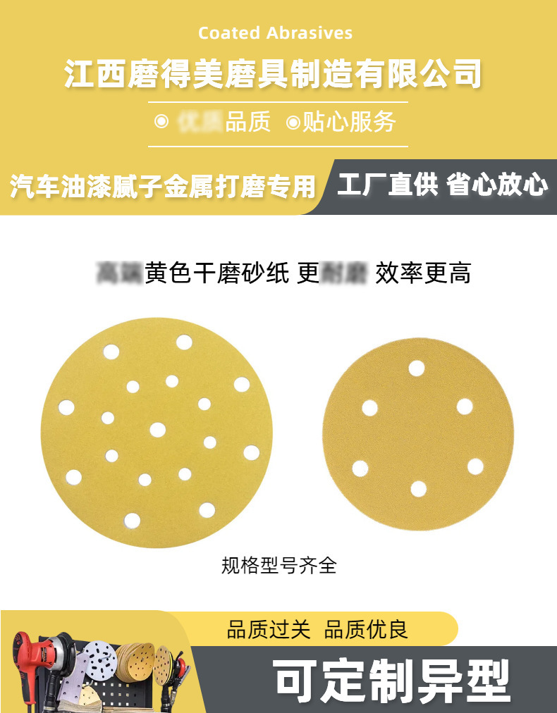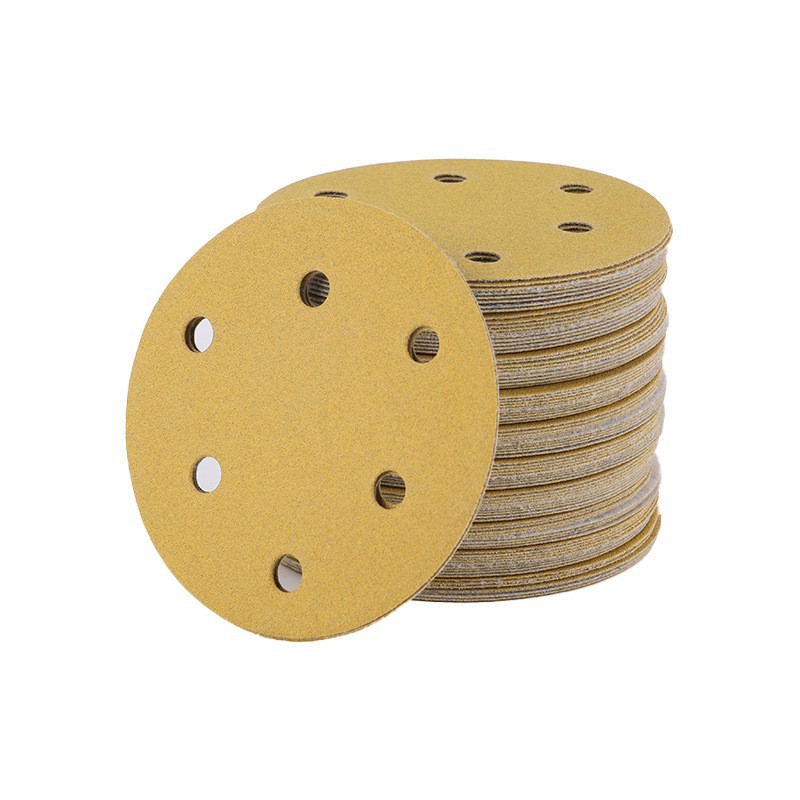 6 인치 17 홀 5 인치 6 홀 백 벨벳 사포 150mm 자동차 페인트 기름기 연삭 디스크 사포 건조 연삭 노란색 모래 사포스토어 가기