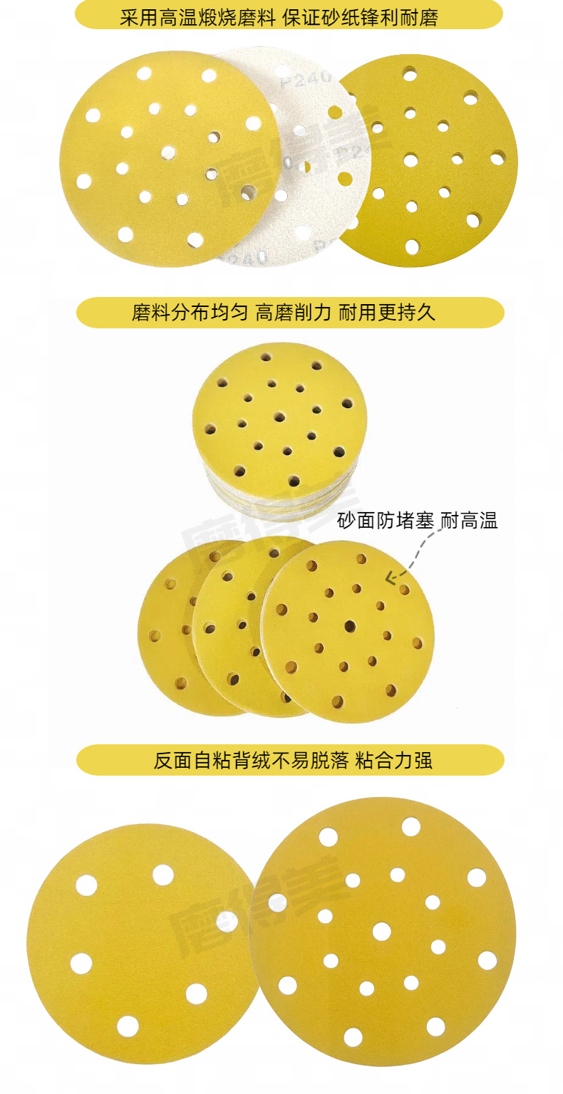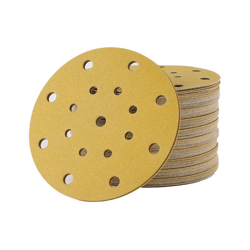 6 인치 17 홀 5 인치 6 홀 백 벨벳 사포 150mm 자동차 페인트 기름기 연삭 디스크 사포 건조 연삭 노란색 모래 사포