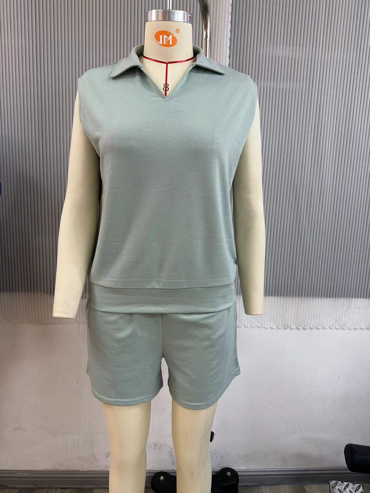 2024 아마존 유럽과 미국 여성 2 피스 민소매 운동복 반바지 포켓 캐주얼 운동복 세트