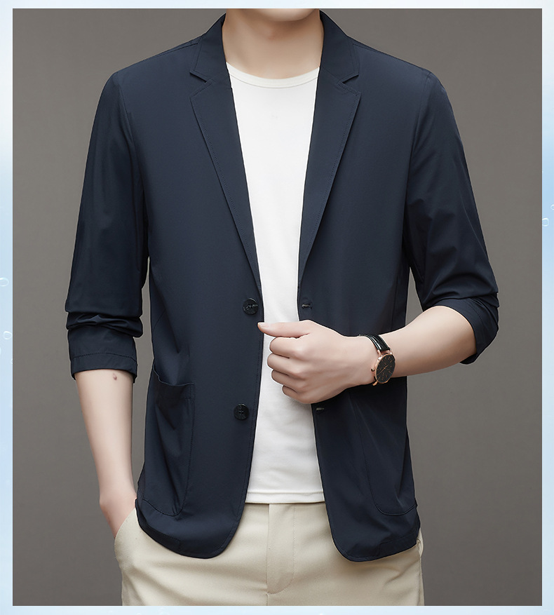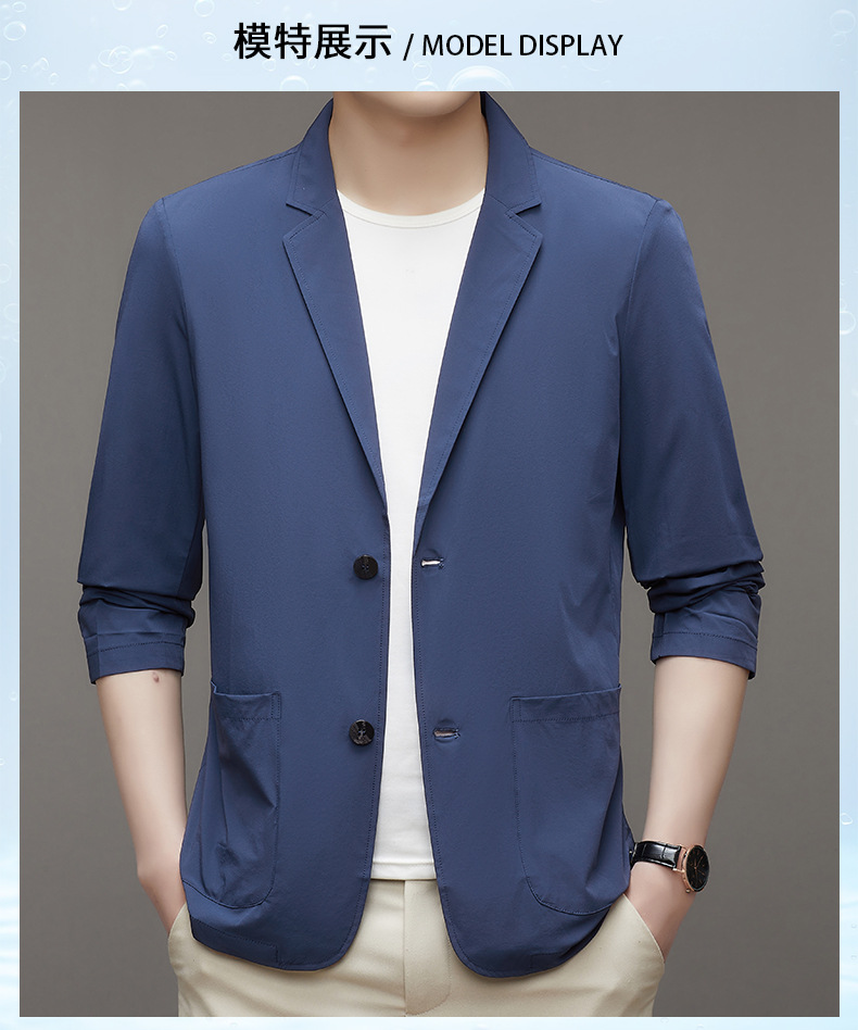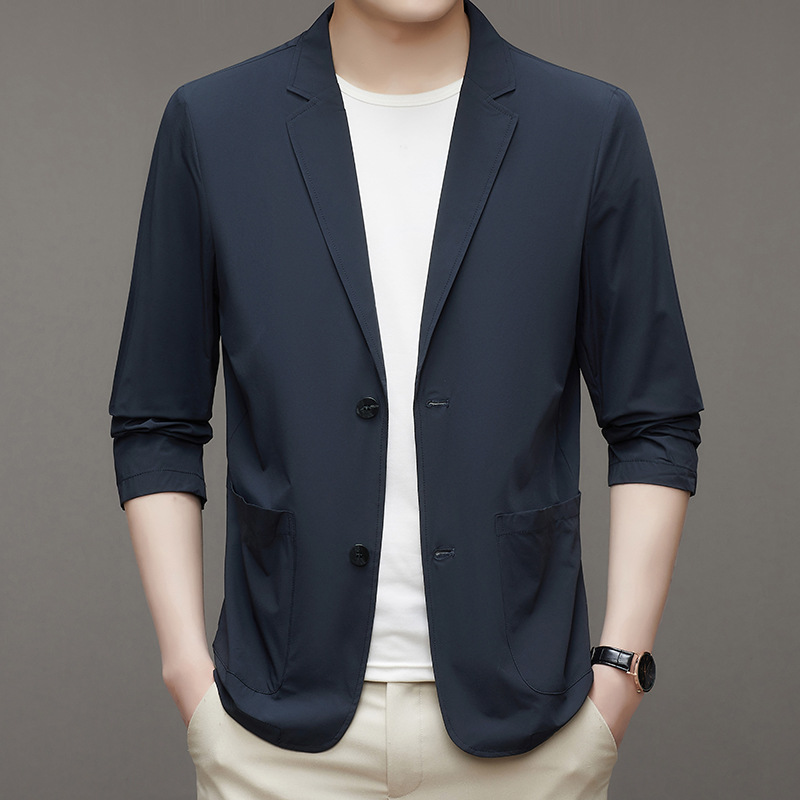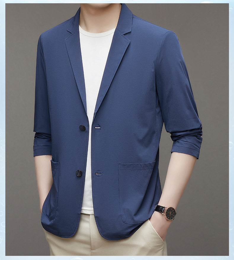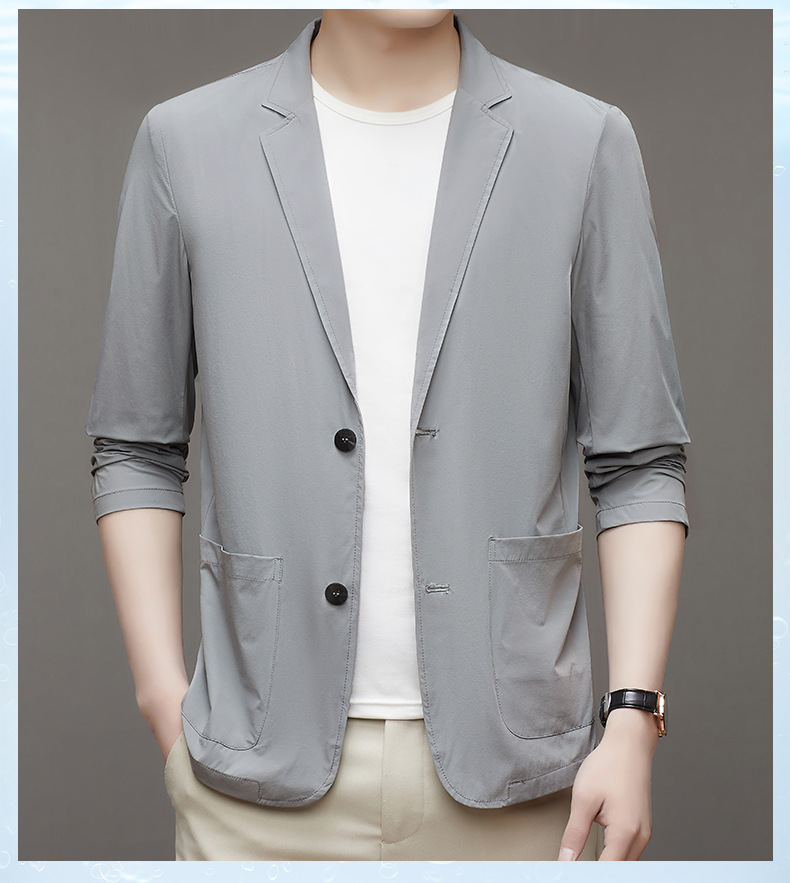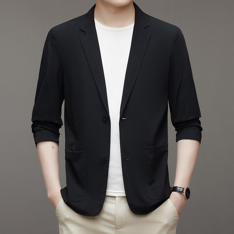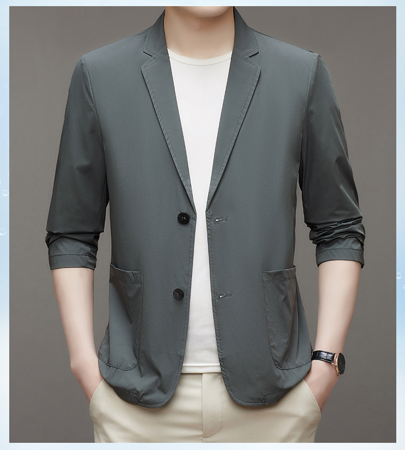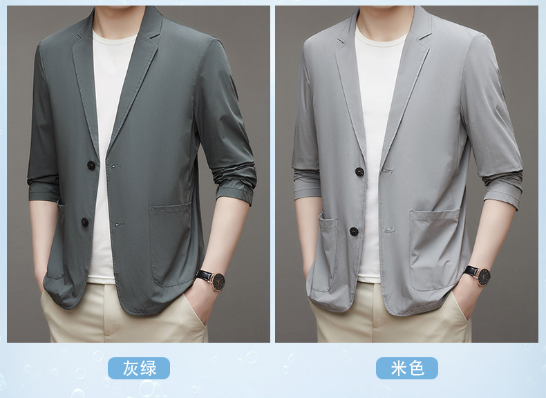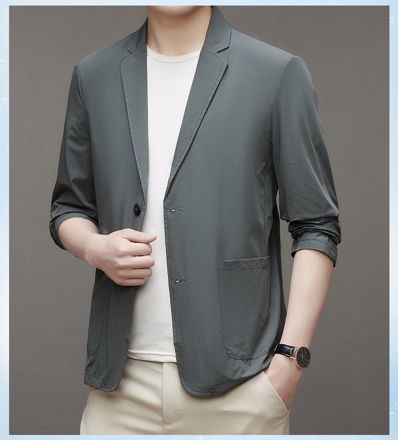 여름 새로운 선 스크린 세트 남자의 얇은 스트레치 솔리드 컬러 비즈니스 패션 캐주얼 싱글 레이어 세트 재킷 남성스토어 가기