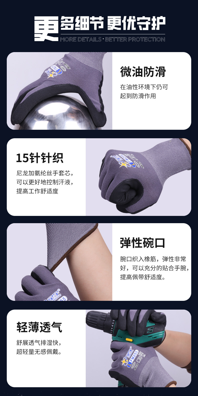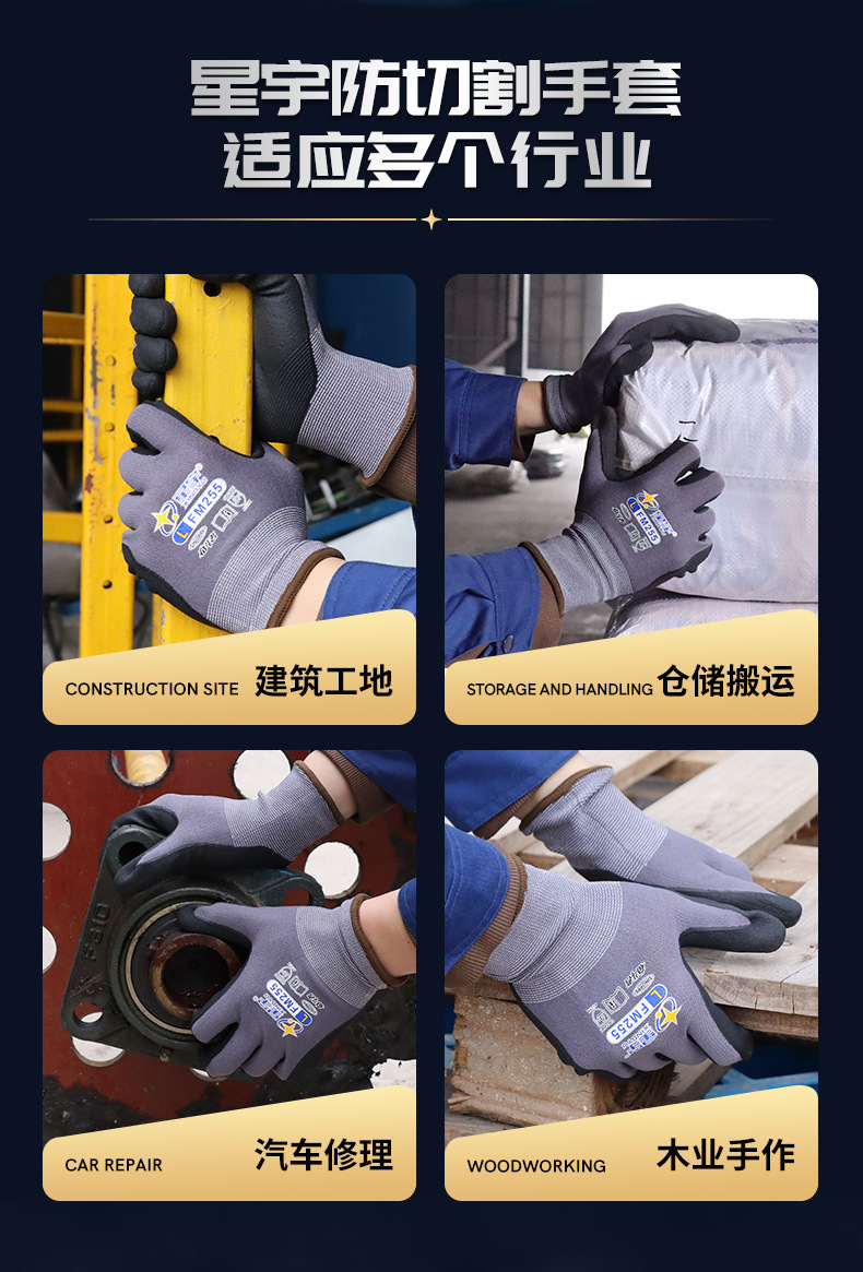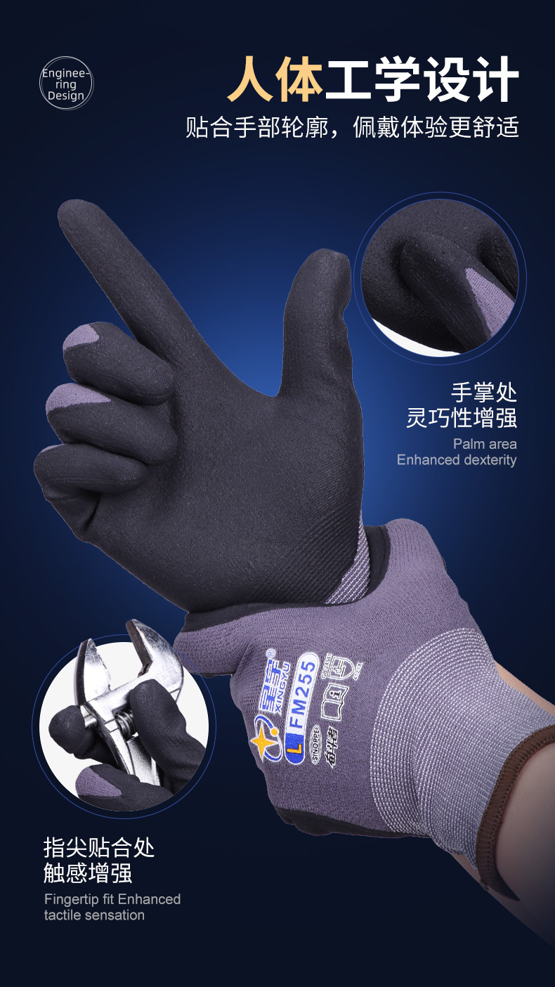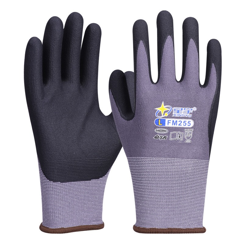 성유 장갑 도매 니트릴 초미세 발포 내마모성 미끄럼 방지 고무 코팅 통기성 건설 현장 나일론 작업 보호 장갑