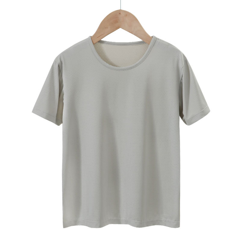 어린이 아이스 실크 반팔 티셔츠 나일론 빠른 건조 티셔츠 남성과 여성의 여름 얇은 통기성 아이스 느낌 반팔 티셔츠 부모-자식스토어 가기