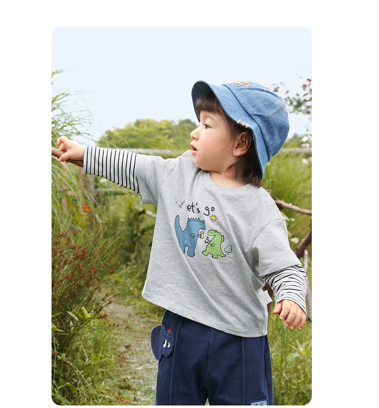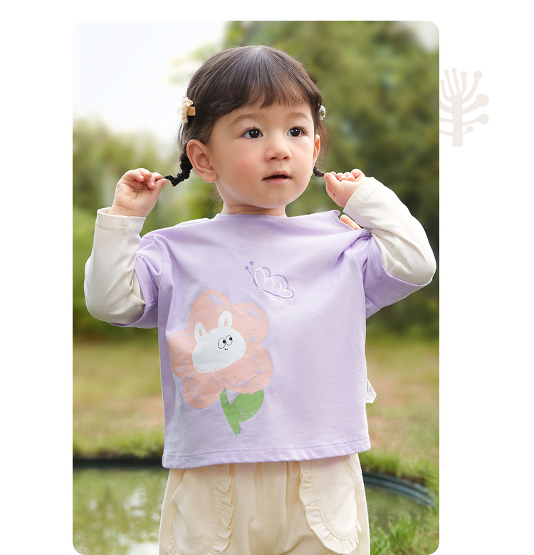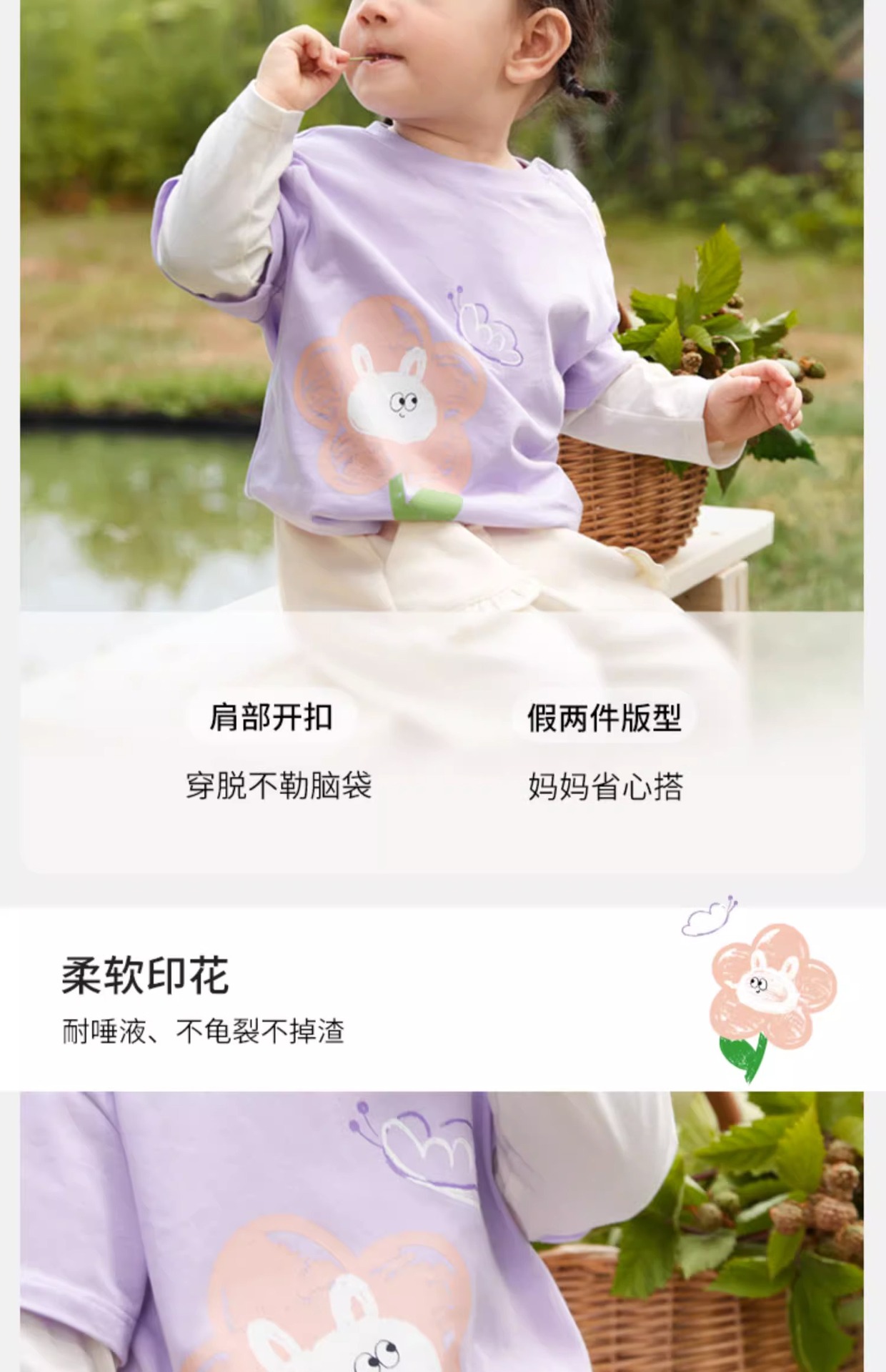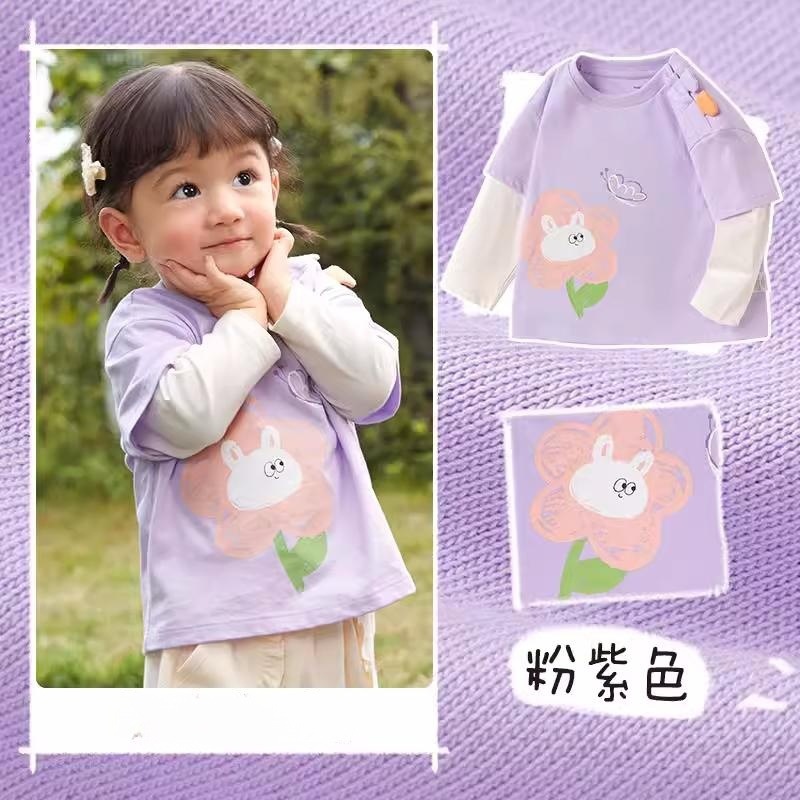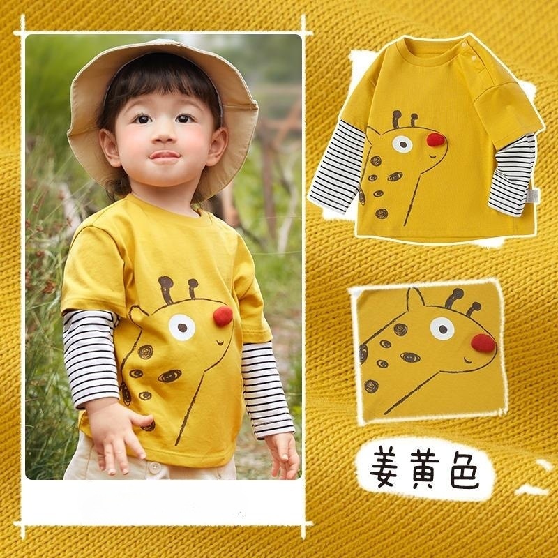 어린이 아기 가을 의류 소년 긴팔 티셔츠 소녀 가짜 투피스 바닥 셔츠 2024 새로운 캐주얼스토어 가기