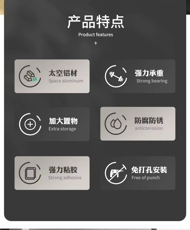 욕실 긴 사각 선반 벽걸이 화장실 세탁기 벽 주방 욕실 보관 무료 펀치