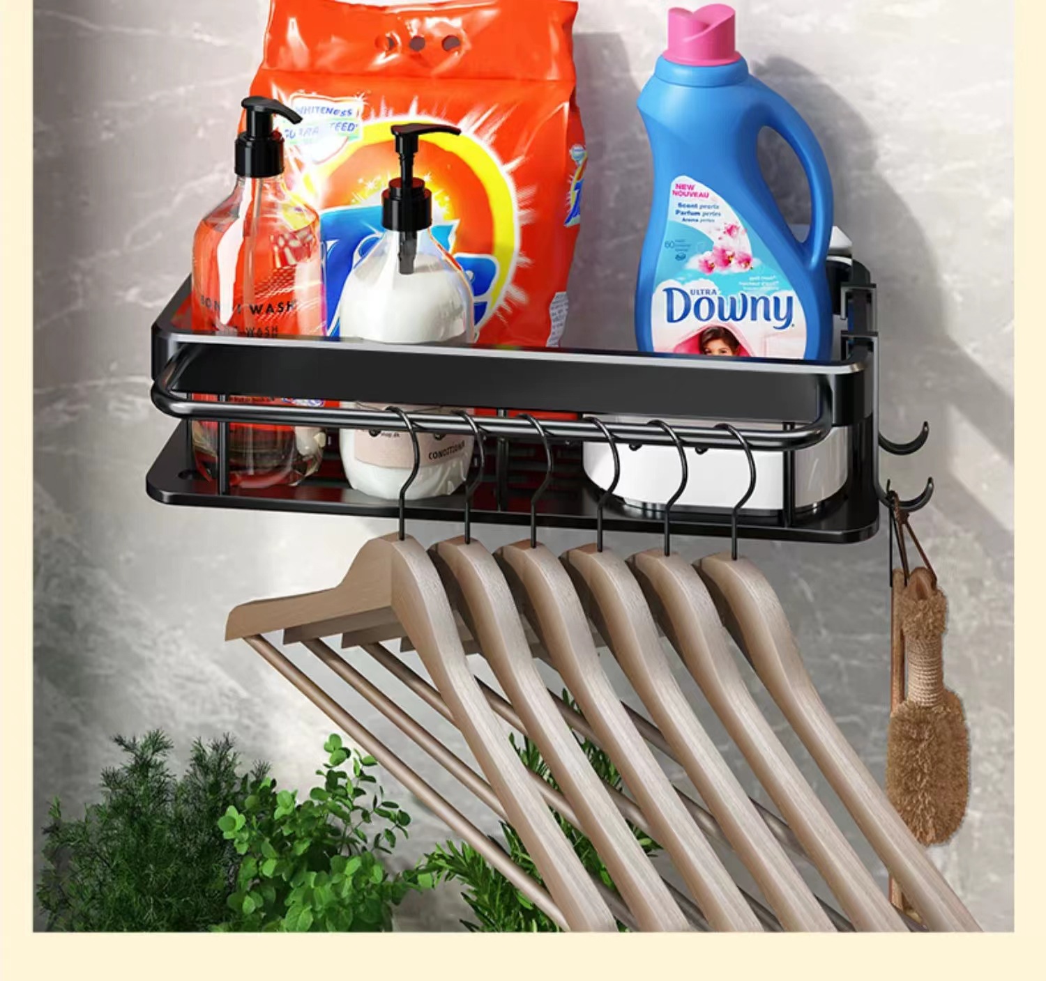 • 가로가 넓은 직사각형 단층 + 후크 + 로드 [블랙]