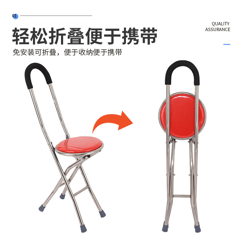 노인 지팡이 의자 스테인레스 스틸 고정 스틱 미끄럼 방지 접이식 다기능 낙하 방지 목발스토어 가기