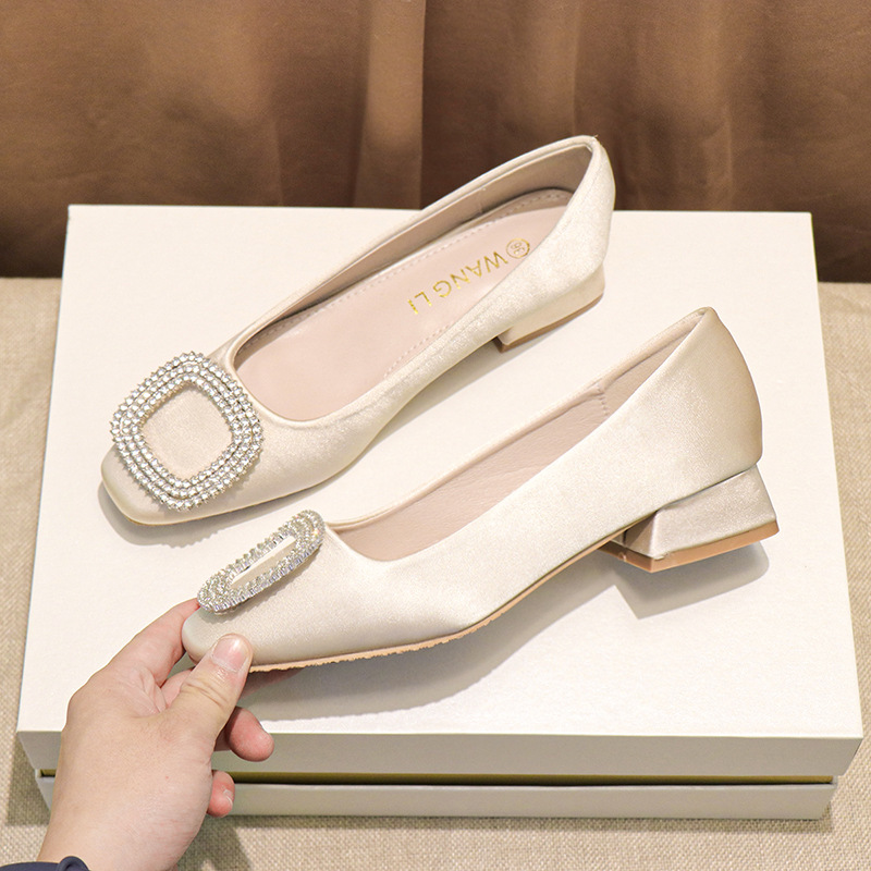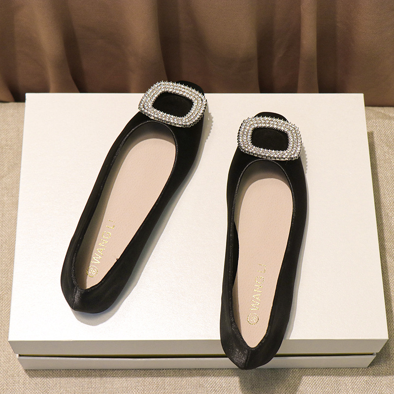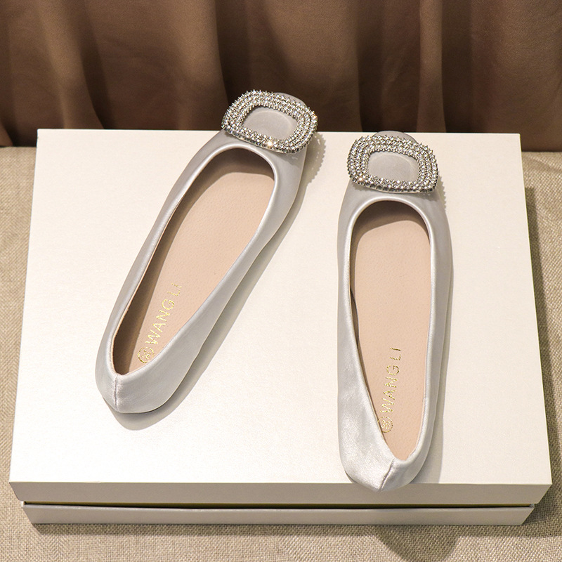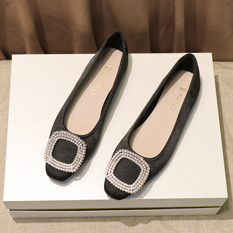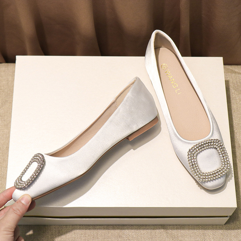 스퀘어 헤드 2023 봄 통근 여성 신발 디자인 센스 얕은 입 기질 싱글 신발 실크 새틴 틈새 소프트 하단 플랫 신발스토어 가기