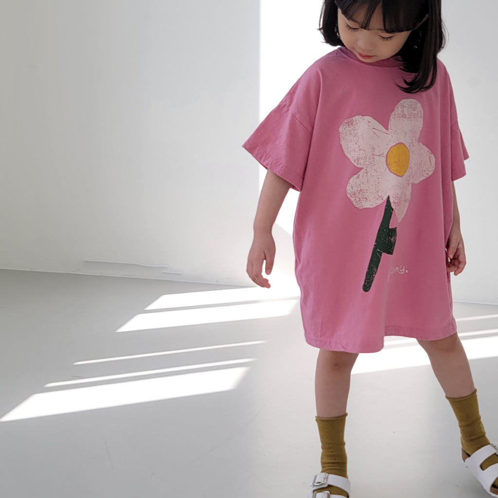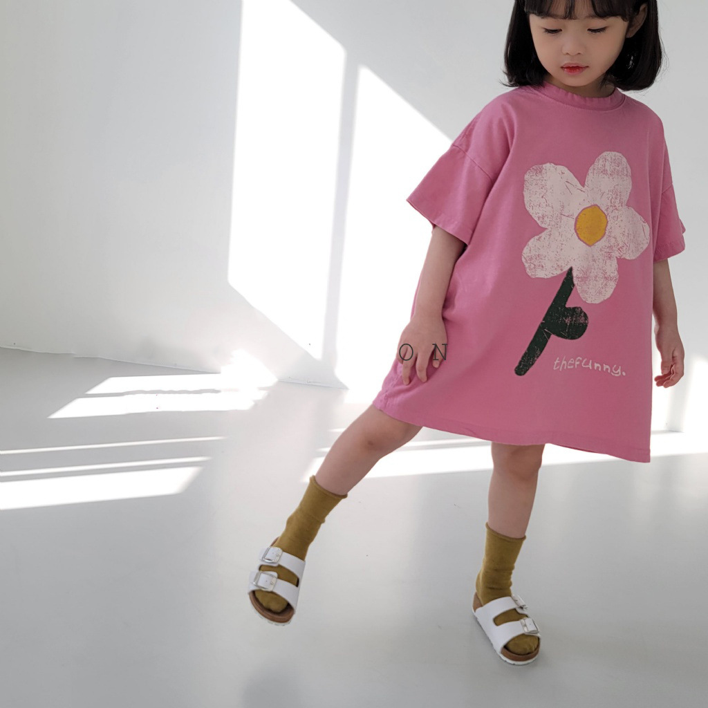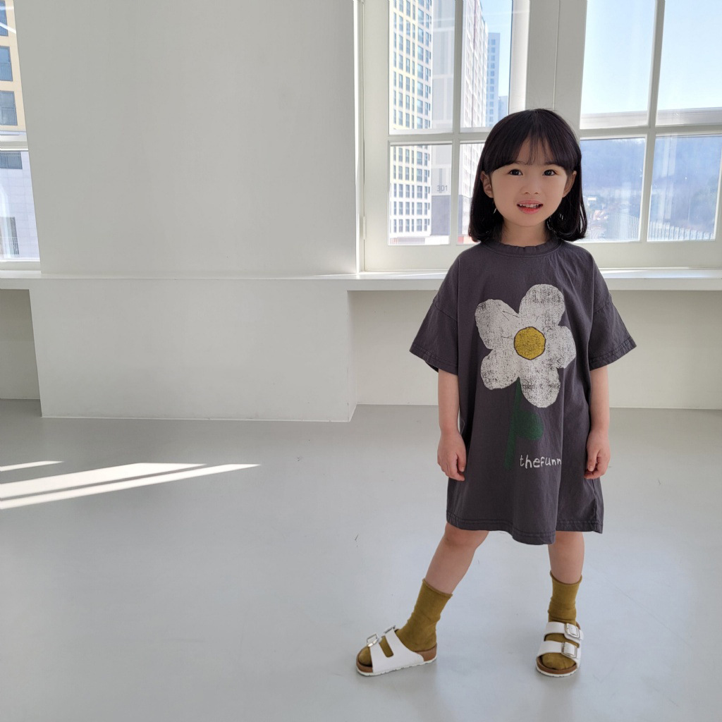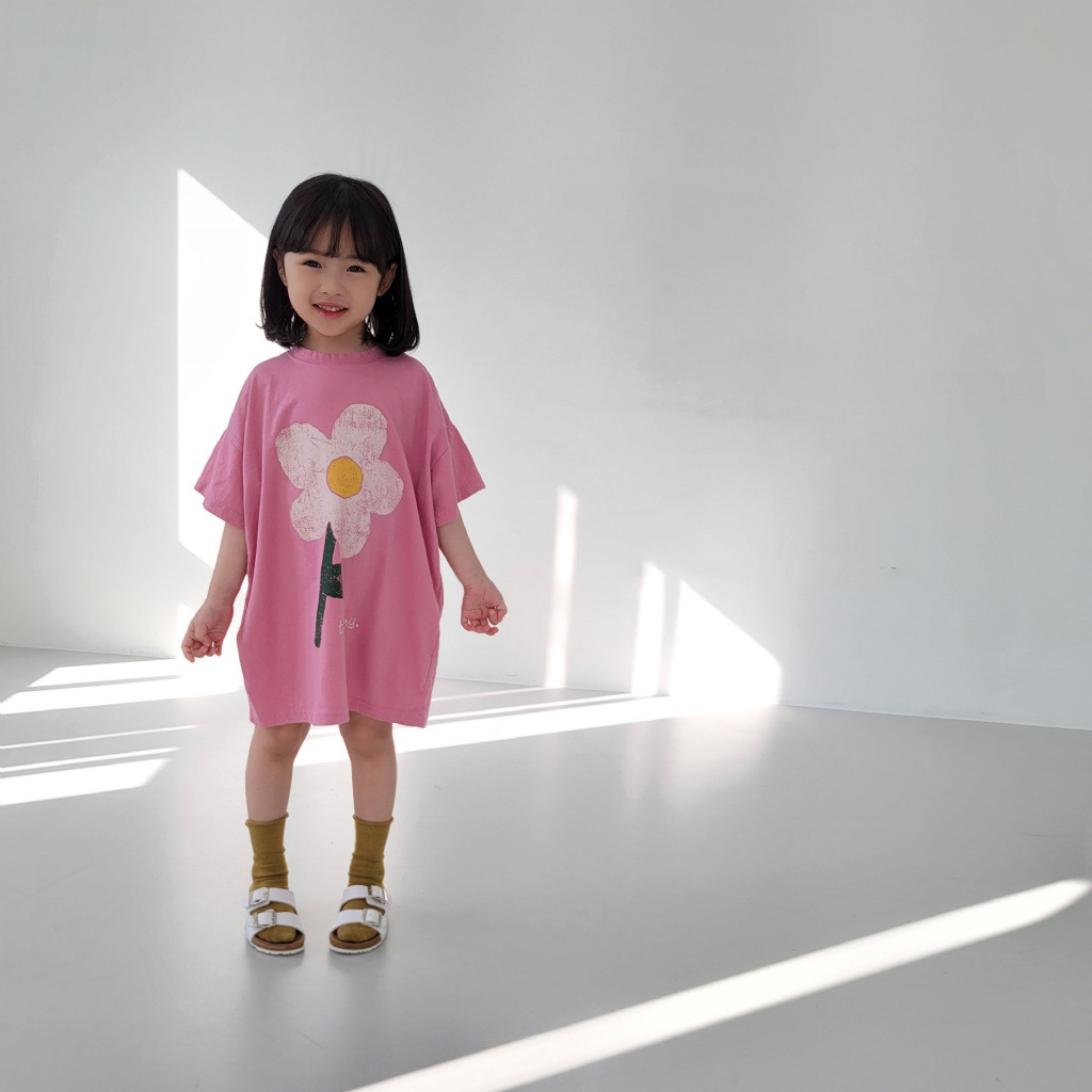 여름 신상품 2026 여아 한국 스타일 스커트 귀여운 꽃무늬 반팔 면 캐주얼 루즈핏 아동복 여름 원피스스토어 가기