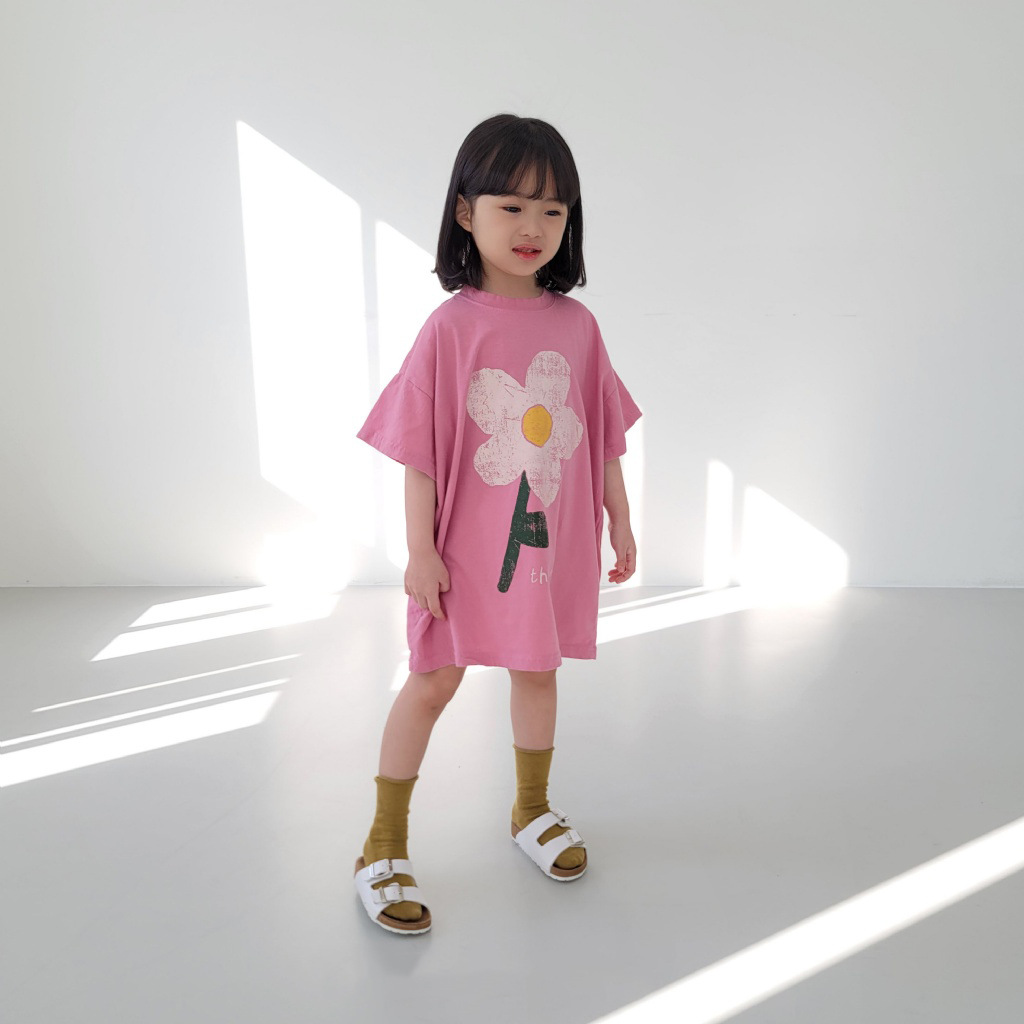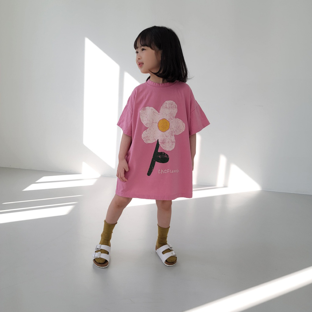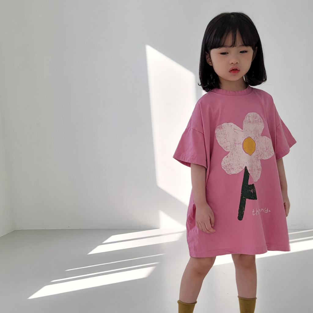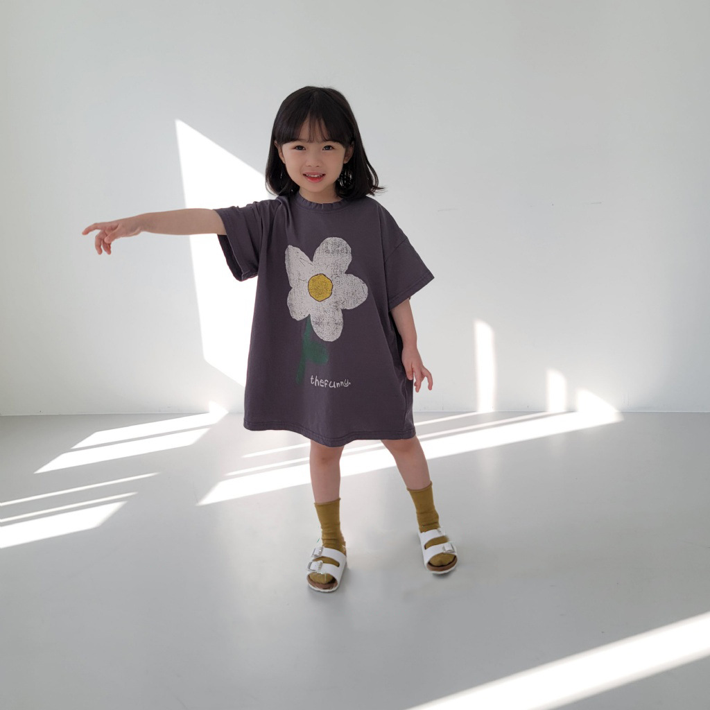 여름 신상품 2026 여아 한국 스타일 스커트 귀여운 꽃무늬 반팔 면 캐주얼 루즈핏 아동복 여름 원피스스토어 가기