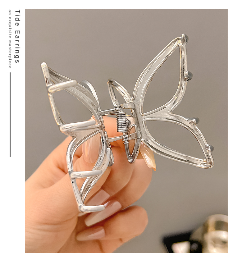Ins 실버 나비 헤어 클립 여성용 머리 반 넥타이 헤어 클립 작은 말 꼬리 상어 클립 쿨 헤드웨어스토어 가기