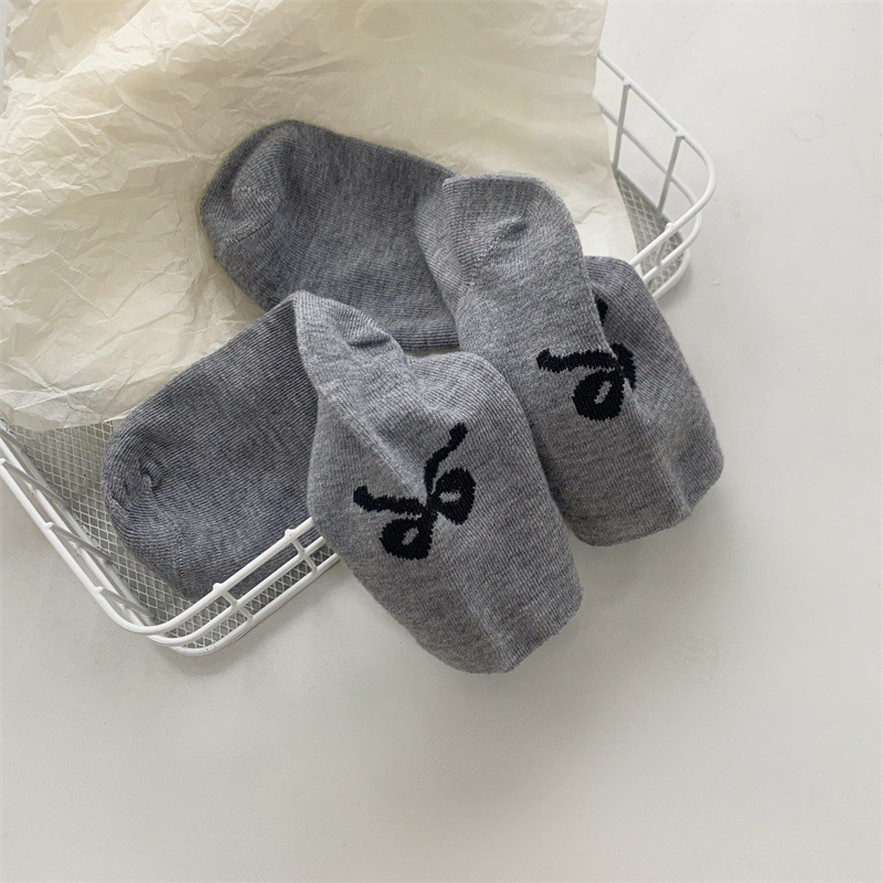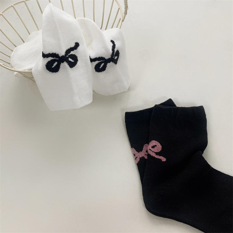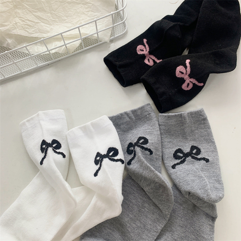 Gentle Bow Korean Ins 여성용 힙 통기성 양말 일본식 귀여운 발레 스타일 양말 흑백 그레이 미디엄 양말