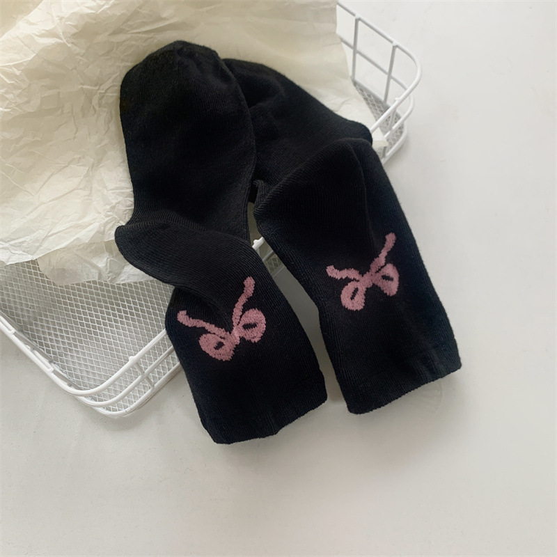 Gentle Bow Korean Ins 여성용 힙 통기성 양말 일본식 귀여운 발레 스타일 양말 흑백 그레이 미디엄 양말스토어 가기