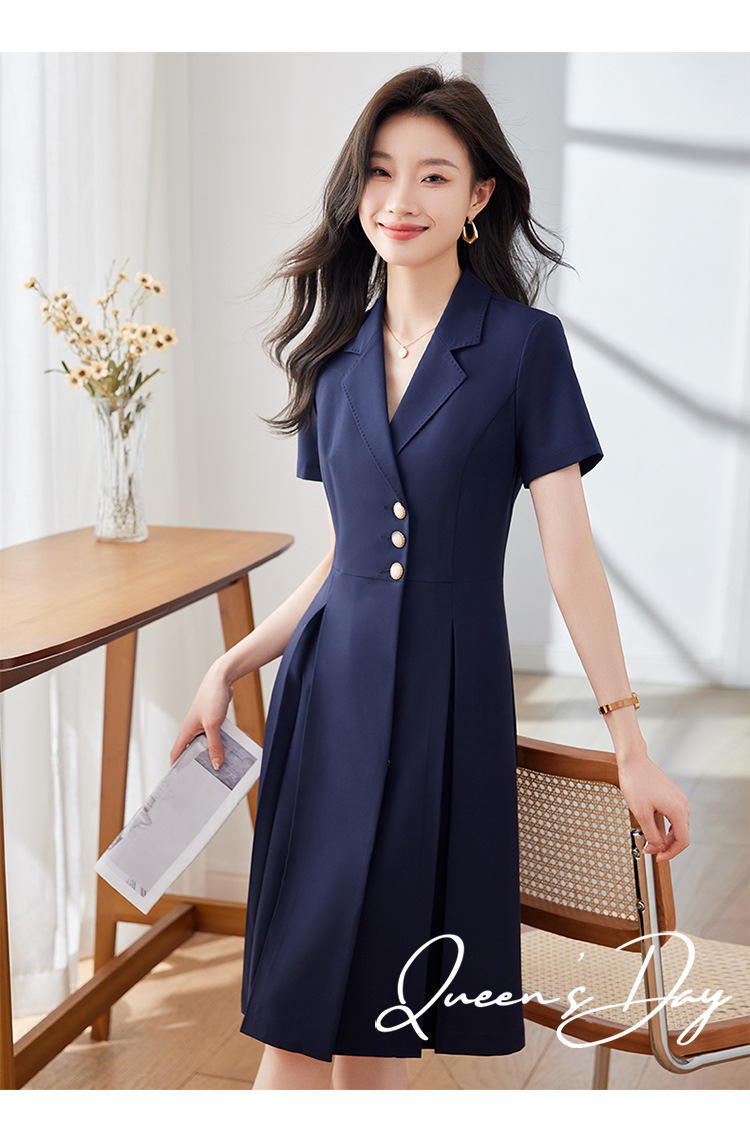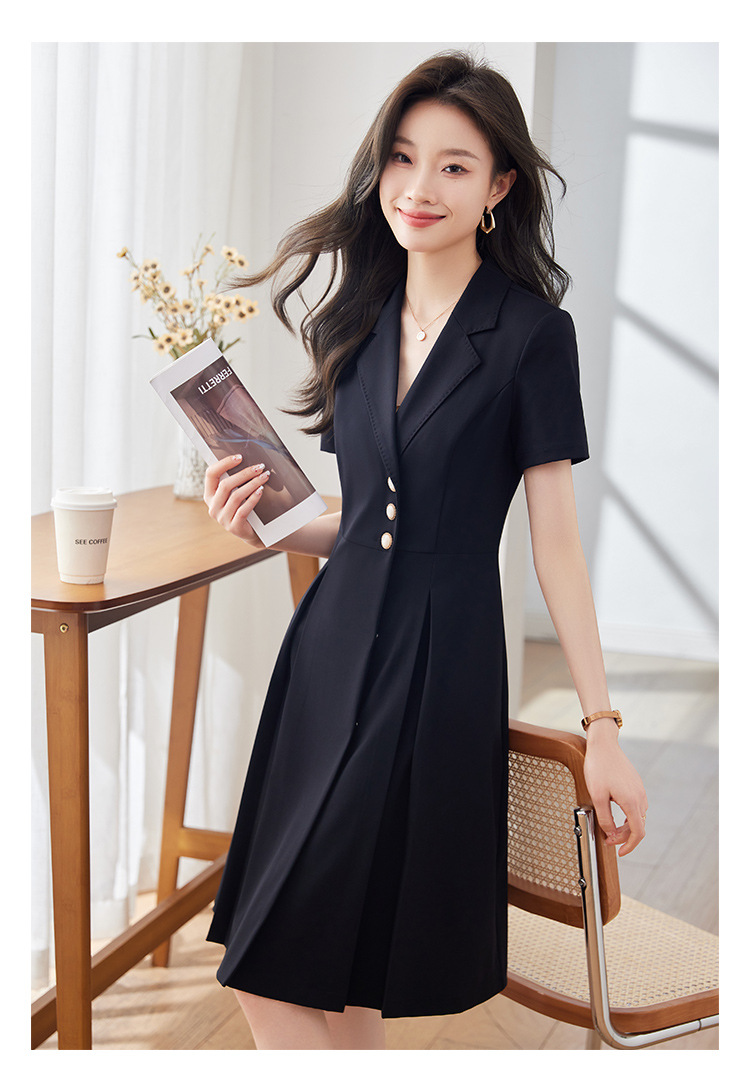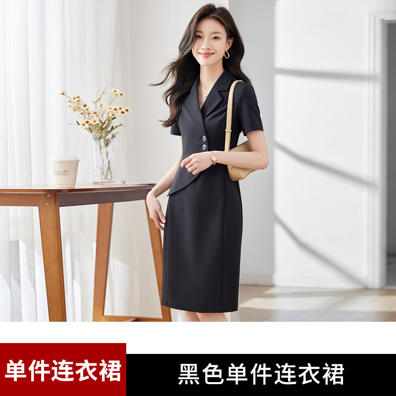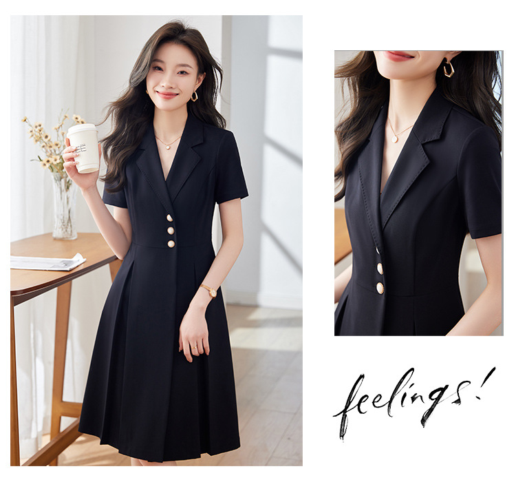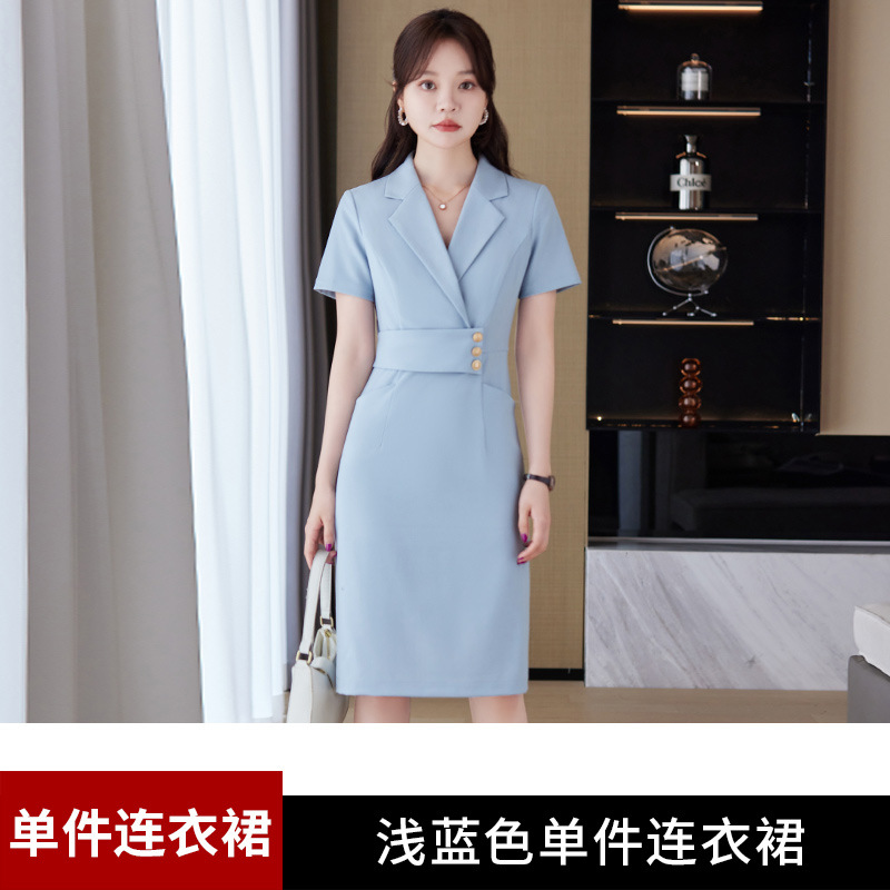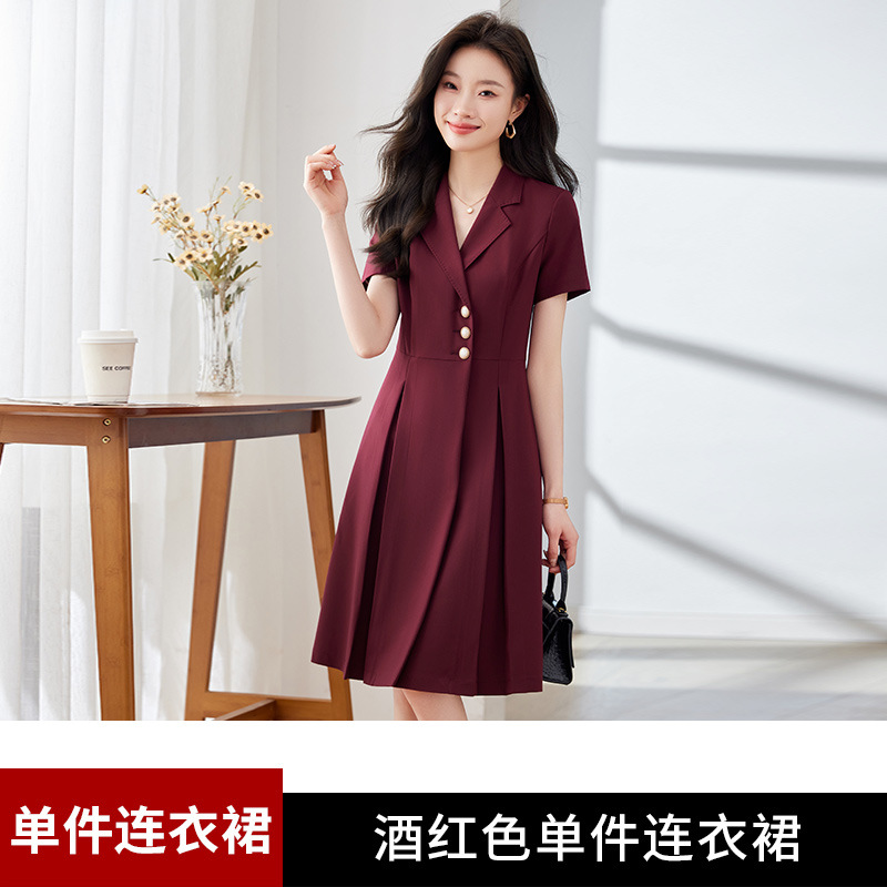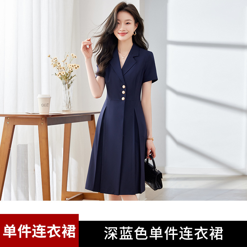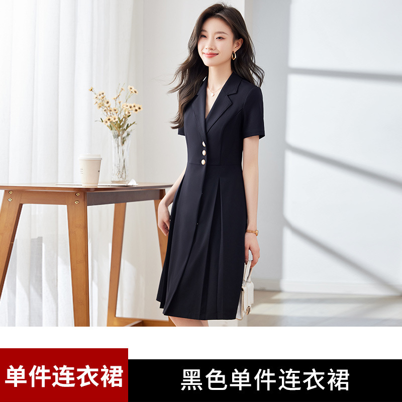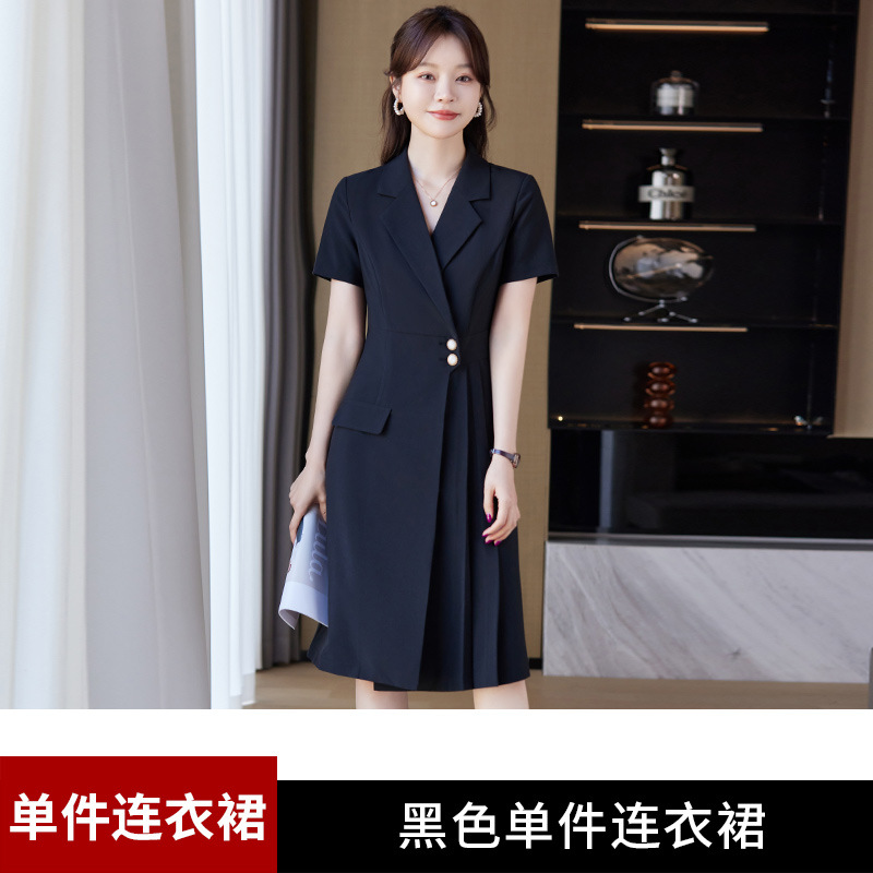 새로운 하이 엔드 센스 비즈니스 V 넥 짧은 소매 원피스 기질 바지 긴 스커트 봄과 여름스토어 가기
