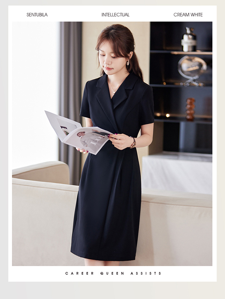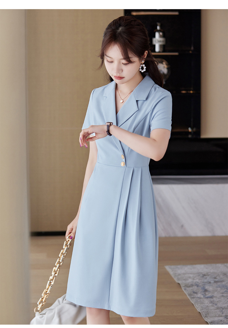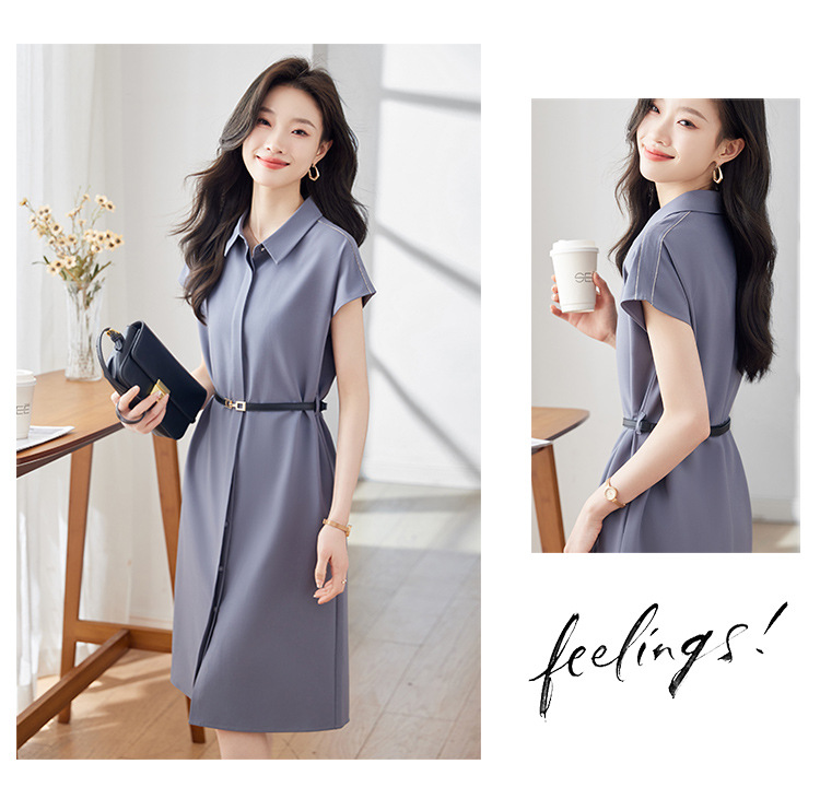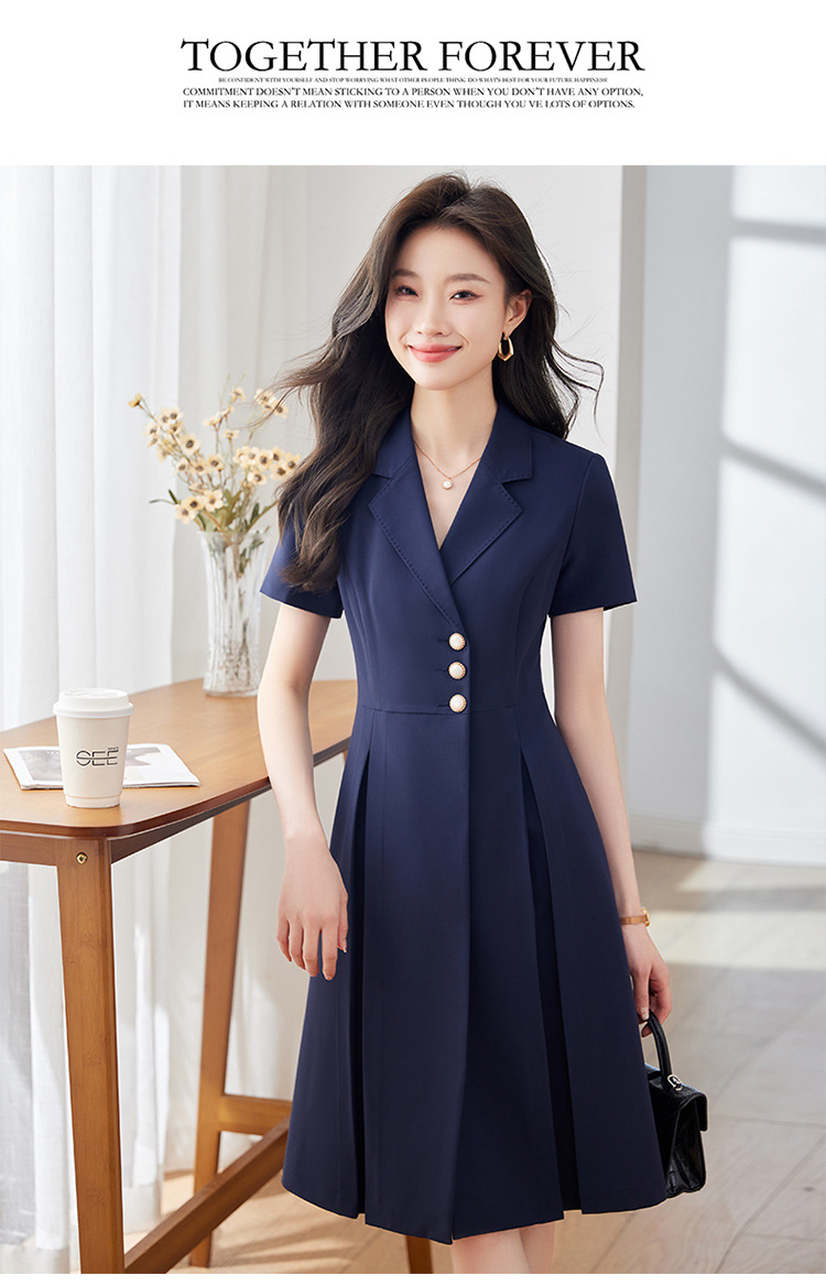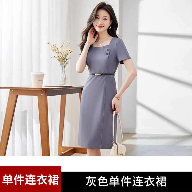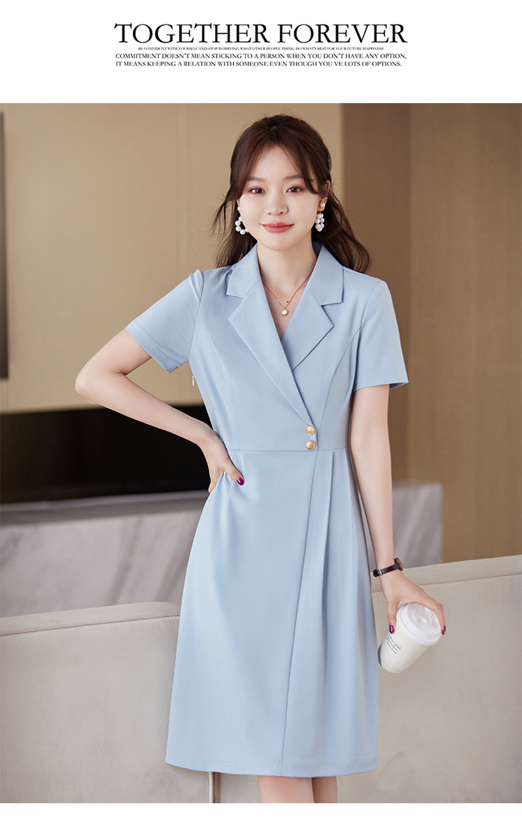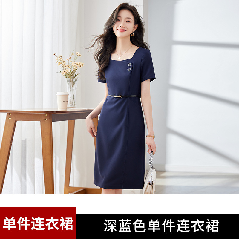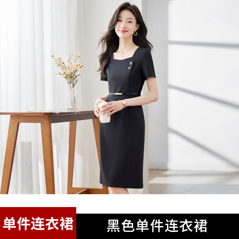 새로운 하이 엔드 센스 비즈니스 V 넥 짧은 소매 원피스 기질 바지 긴 스커트 봄과 여름스토어 가기