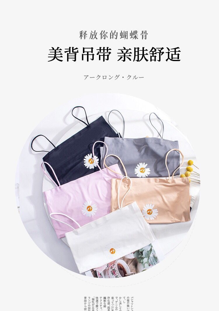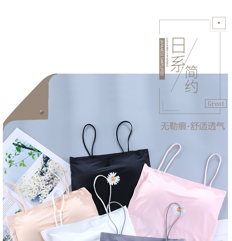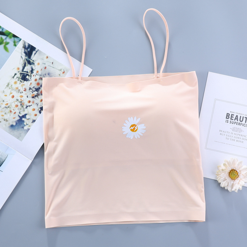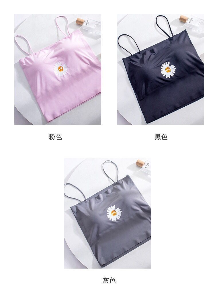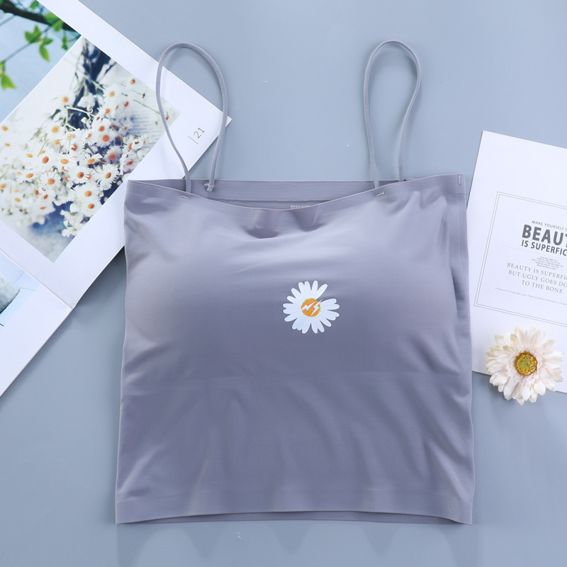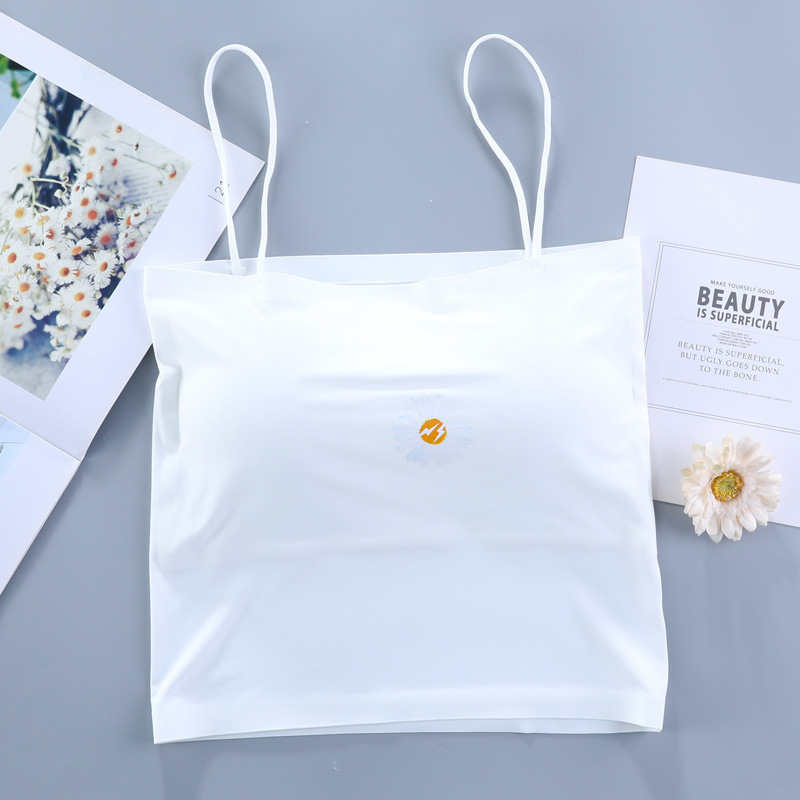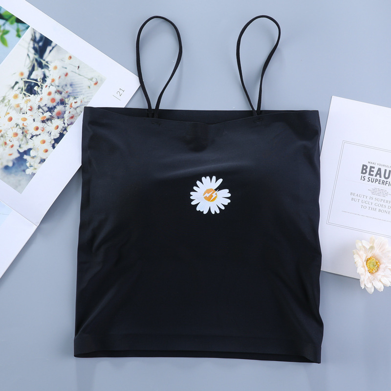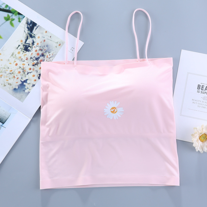 여름 아이스 실크 쿨 소녀의 카미 솔 조끼 데이지 인쇄 비 마킹 얇은 어깨 스트랩 벨트 가슴 패드 내부와 외부 착용 캐주얼