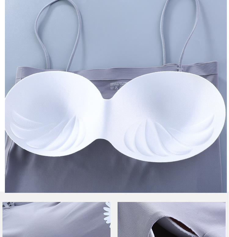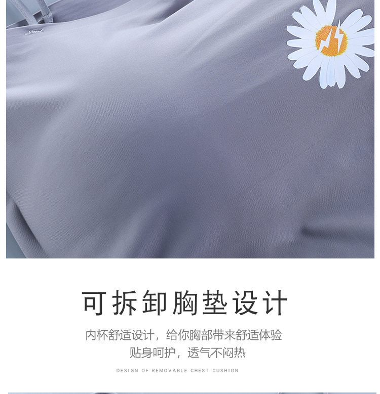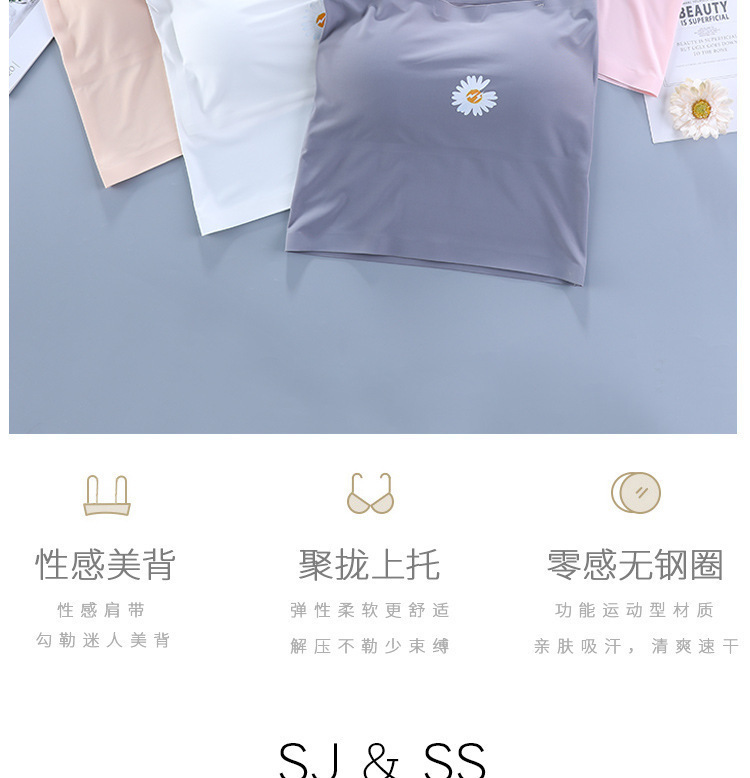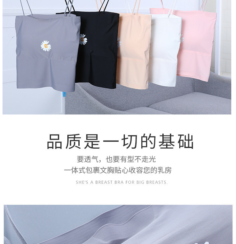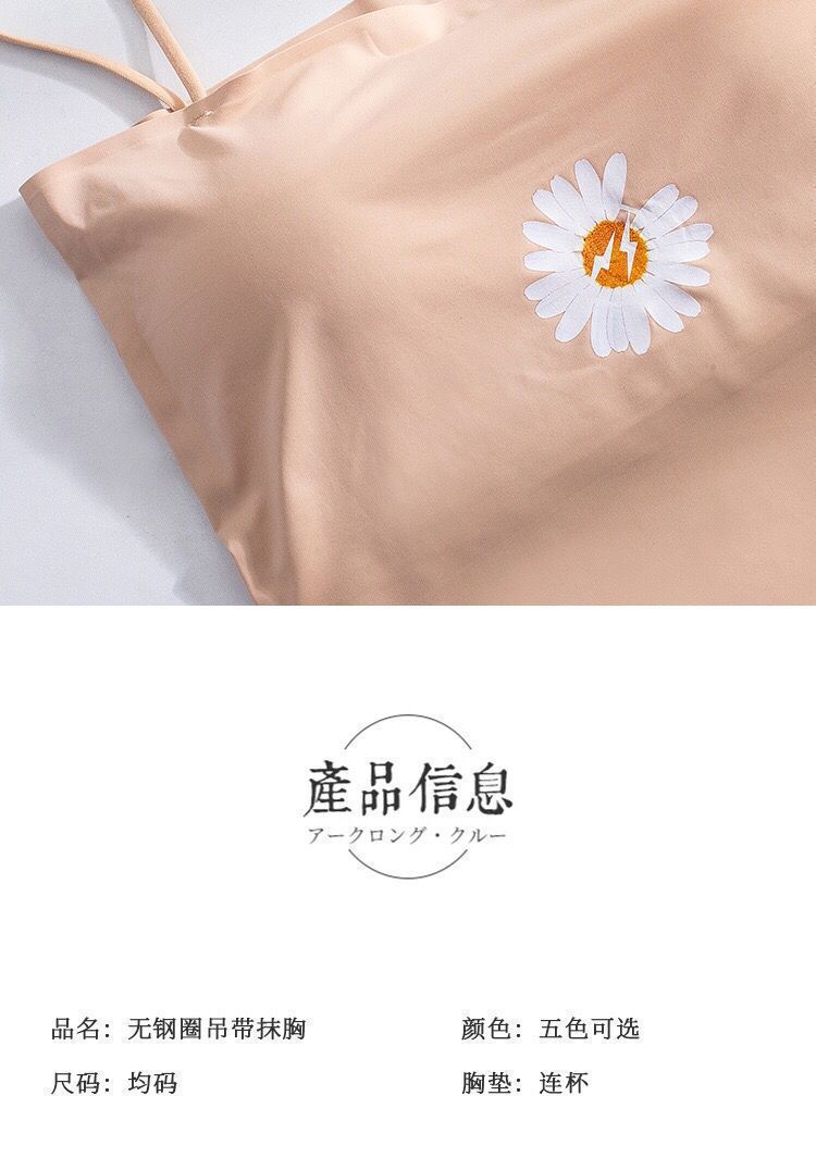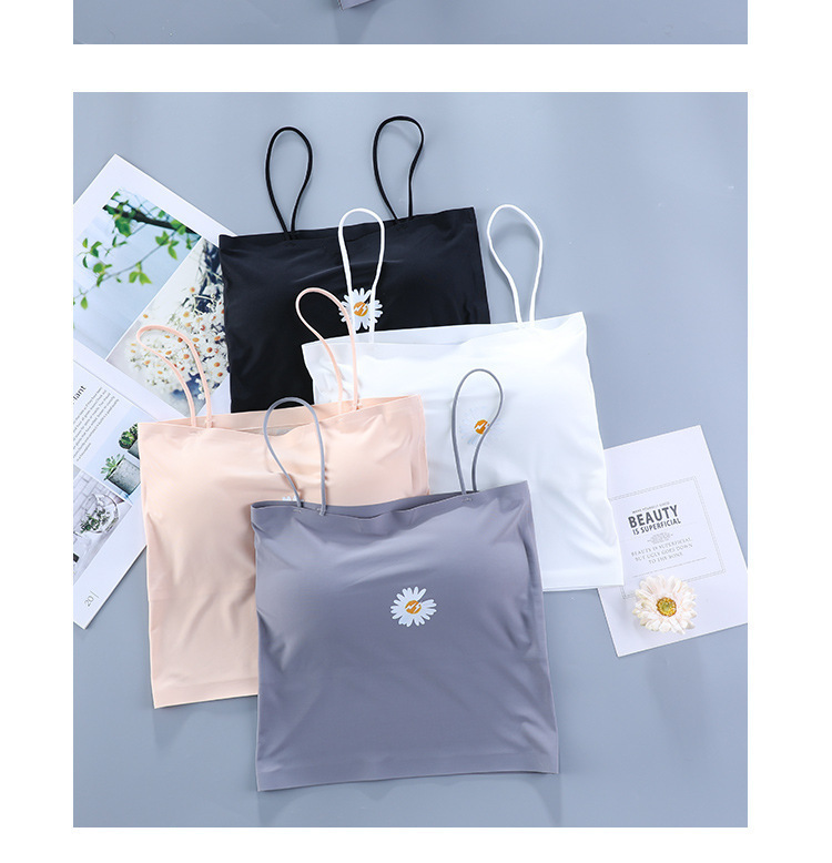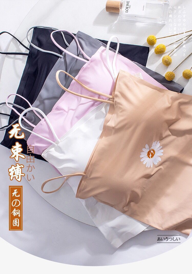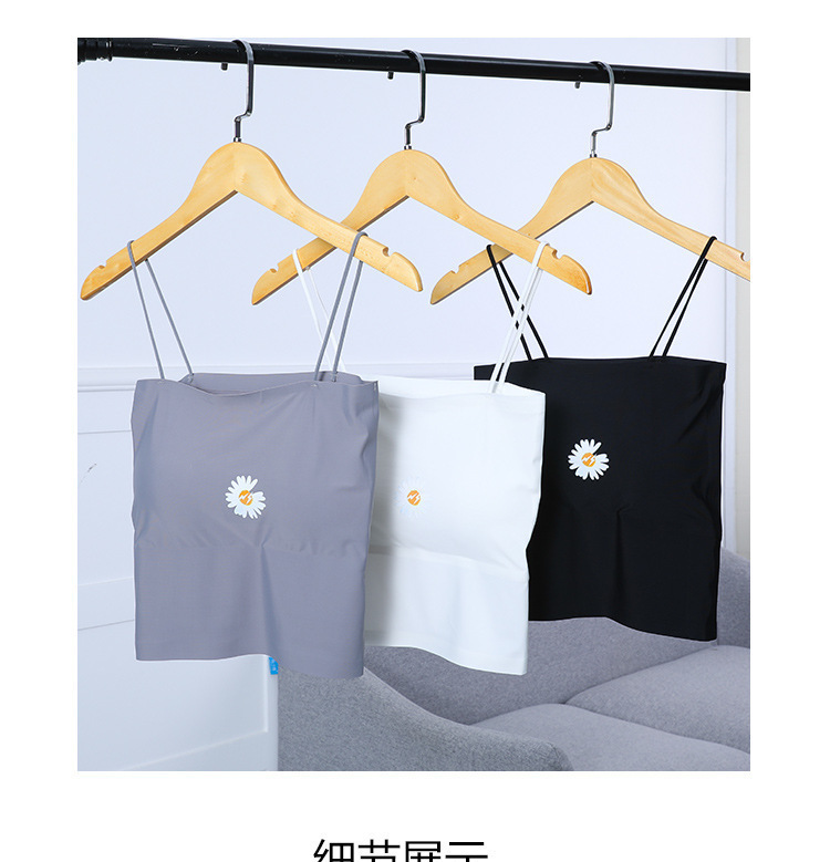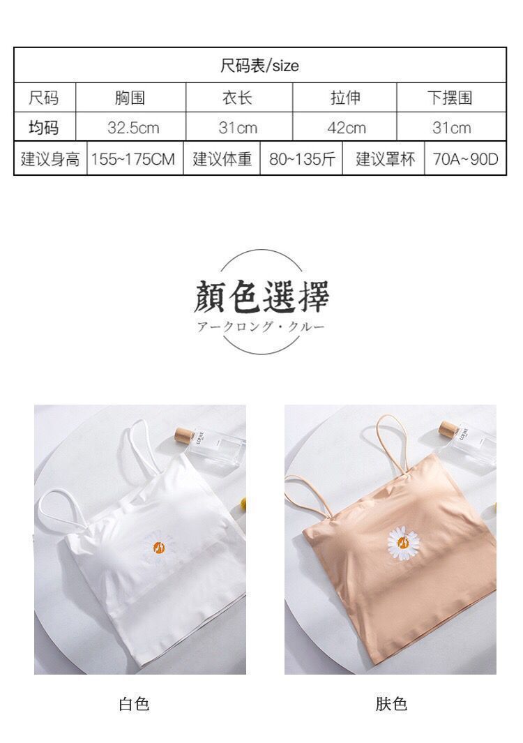 여름 아이스 실크 쿨 소녀의 카미 솔 조끼 데이지 인쇄 비 마킹 얇은 어깨 스트랩 벨트 가슴 패드 내부와 외부 착용 캐주얼