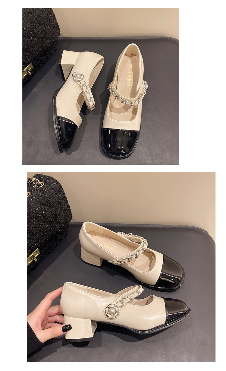 2024 폭발 메리 제인 신발 여름 새로운 스타일 샤넬 스타일 여성 신발 두꺼운 힐 얕은 입 싱글 신발 모든 경기 폭발 인터넷 축하스토어 가기