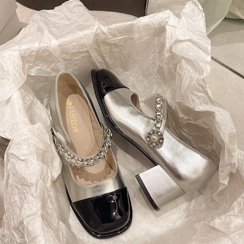 2024 폭발 메리 제인 신발 여름 새로운 스타일 샤넬 스타일 여성 신발 두꺼운 힐 얕은 입 싱글 신발 모든 경기 폭발 인터넷 축하