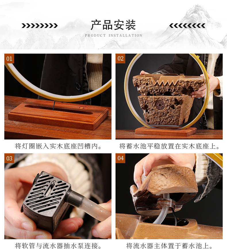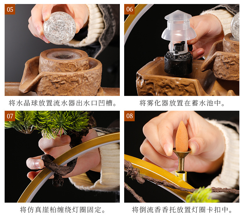 흐르는 물 장식품 순환 물 거실 현관 사무실 재산 세라믹 바위 분수 빈티지 장식