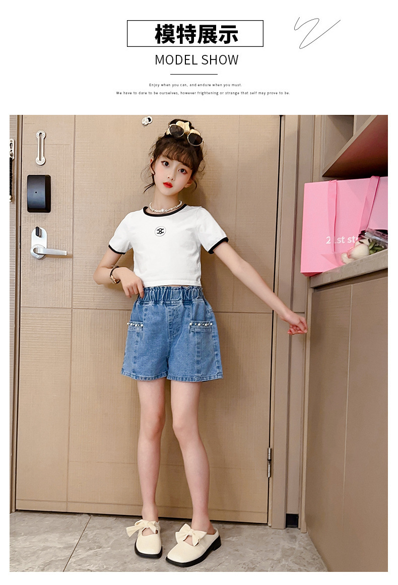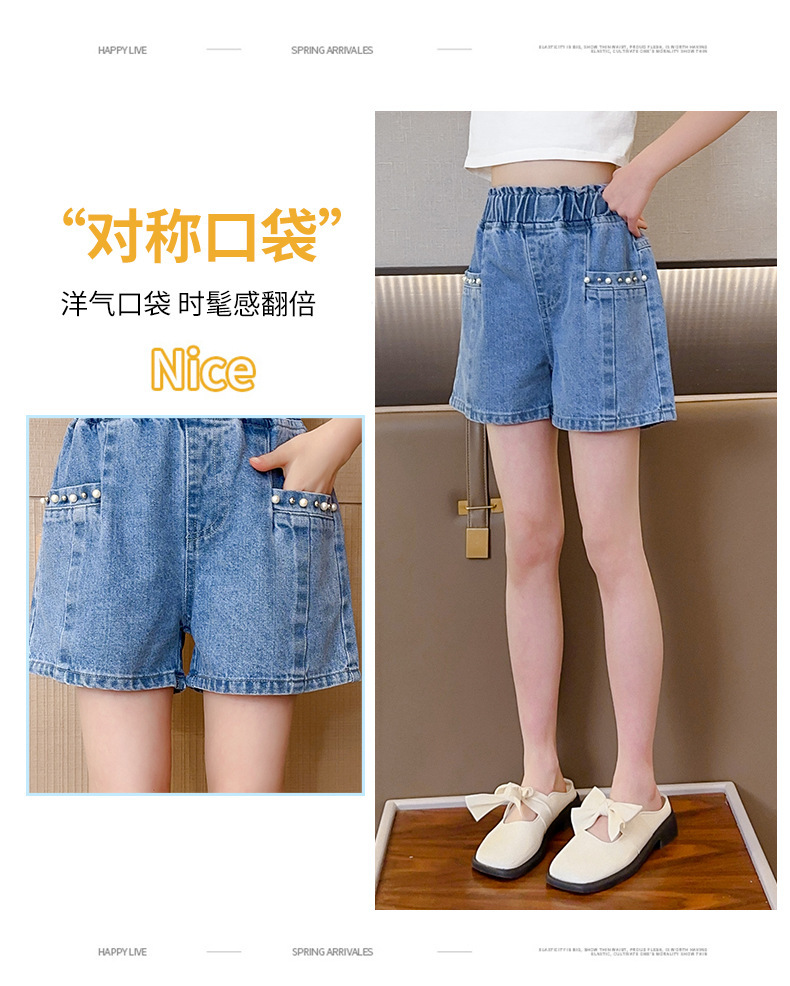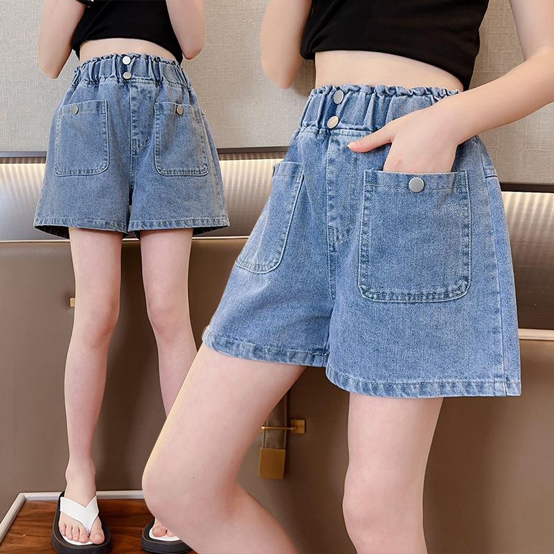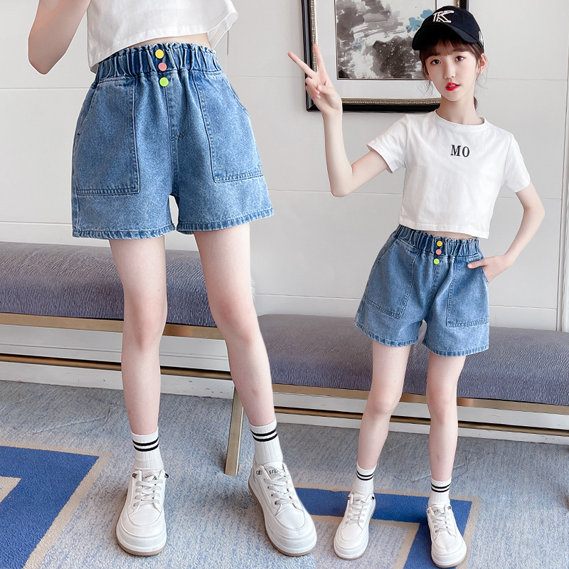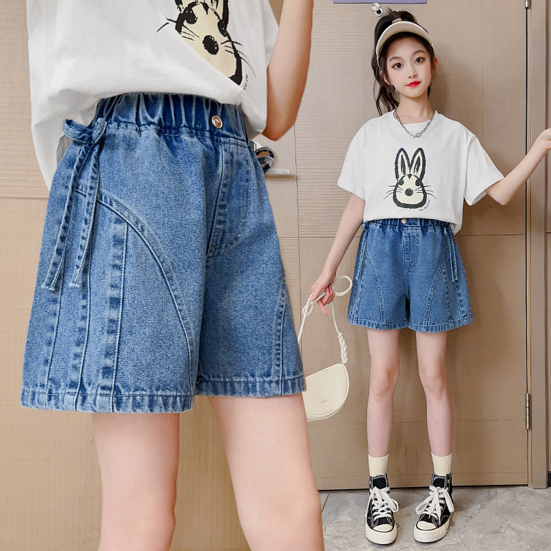 여아 데님 반바지 여름 착용 2025 새로운 스타일 중대형 아동용 여름 겉옷 다용도 얇은 바지스토어 가기