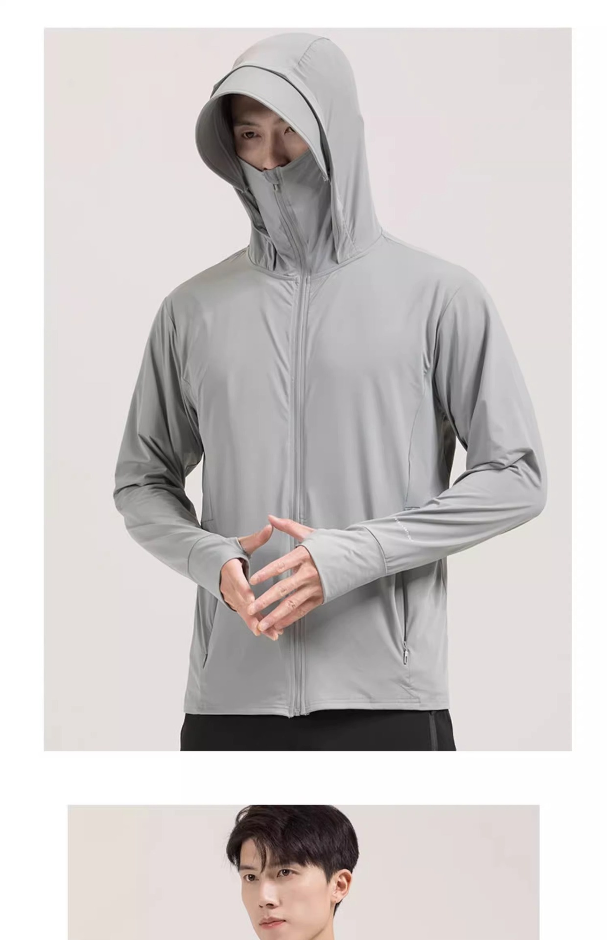 남성용 자외선 차단 의류, 야외 자외선 차단 낚시복, 햇빛 차단 의류, 얼굴 가리개 일체형 스킨 의류, 원사 자외선 차단