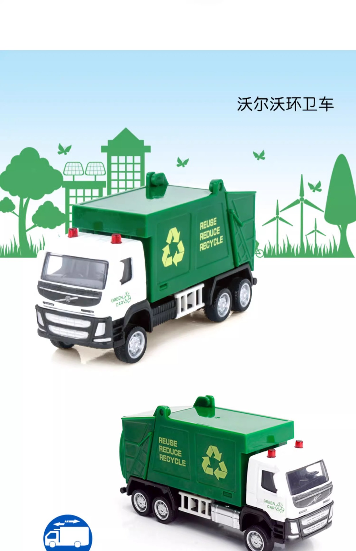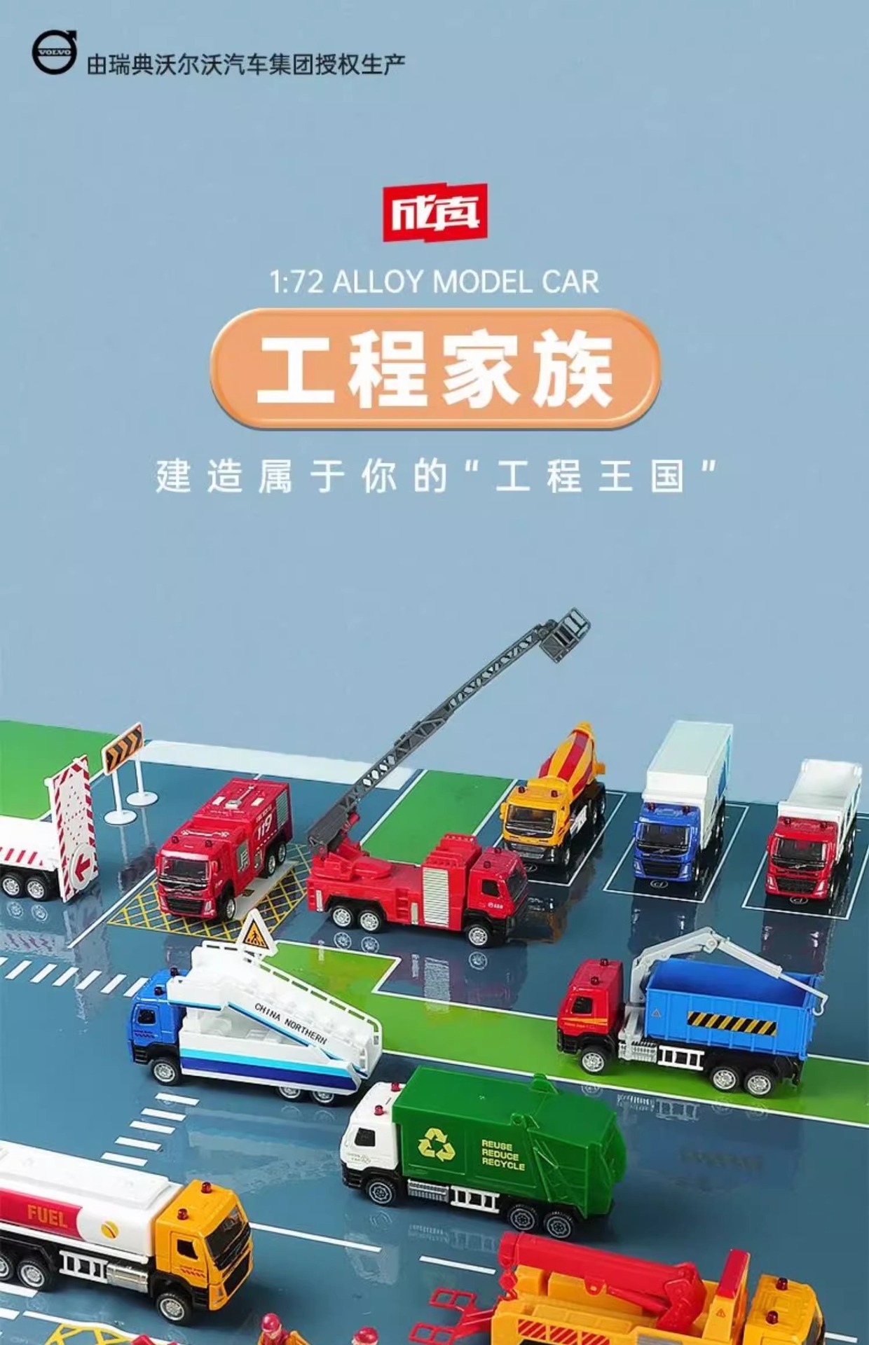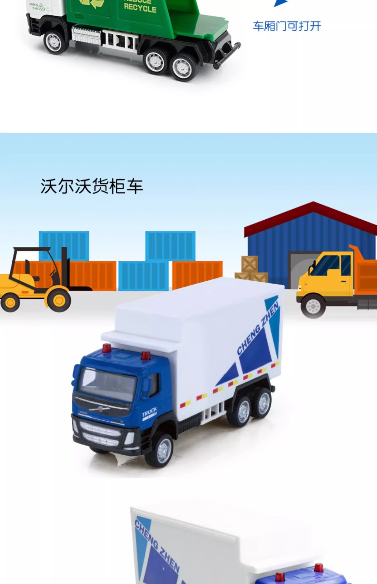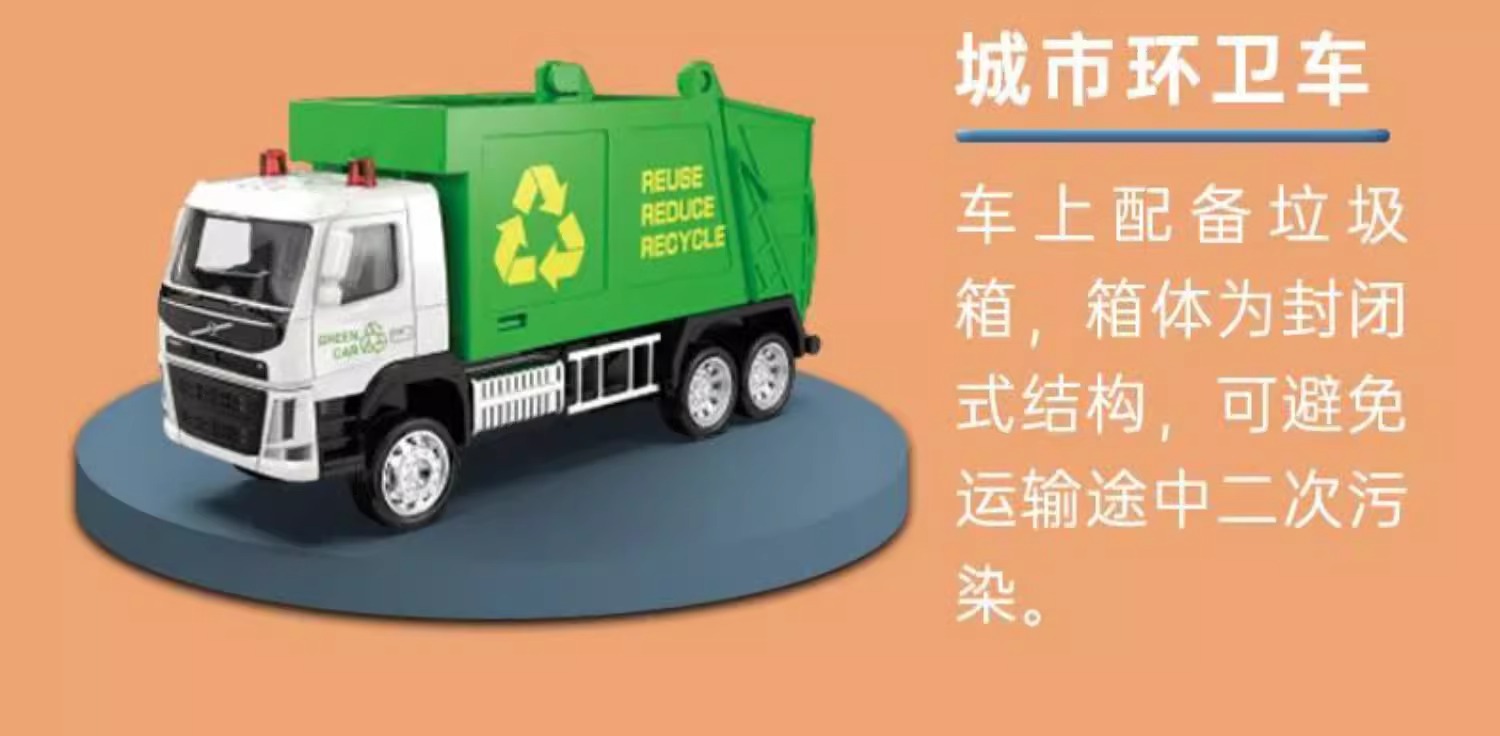 Caipo 1:72 정품 볼보 위생 공학 소방차 시리즈 합금 장난감 자동차 어린이 생일 선물스토어 가기