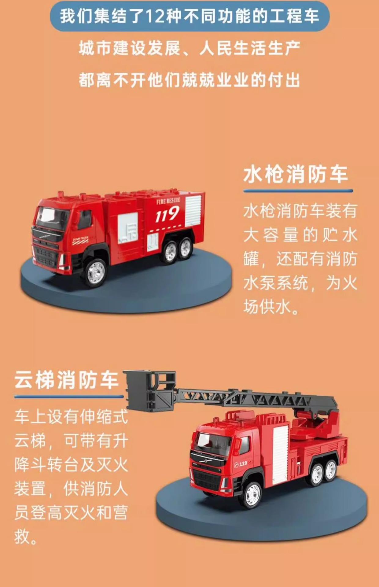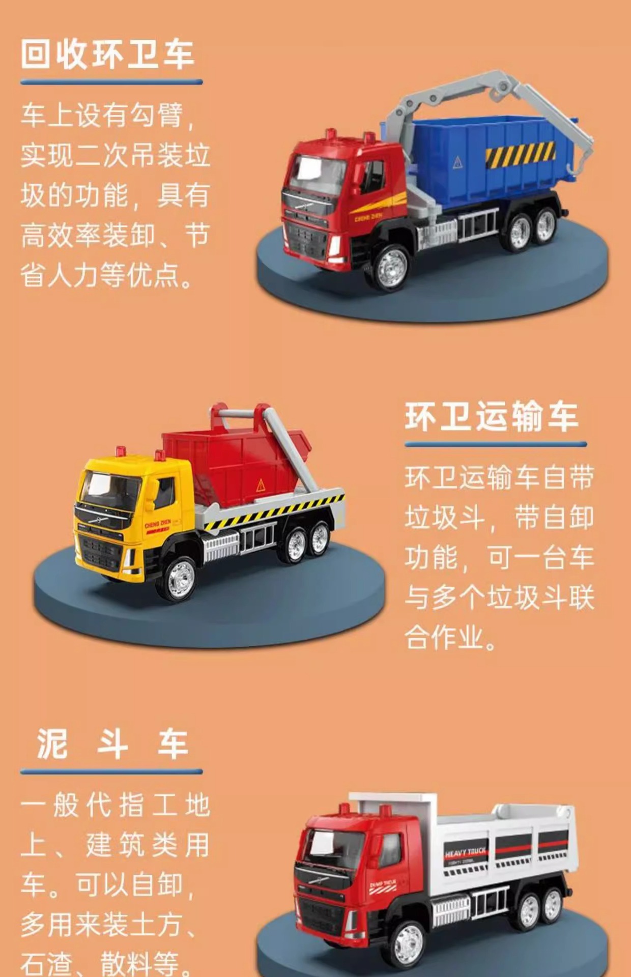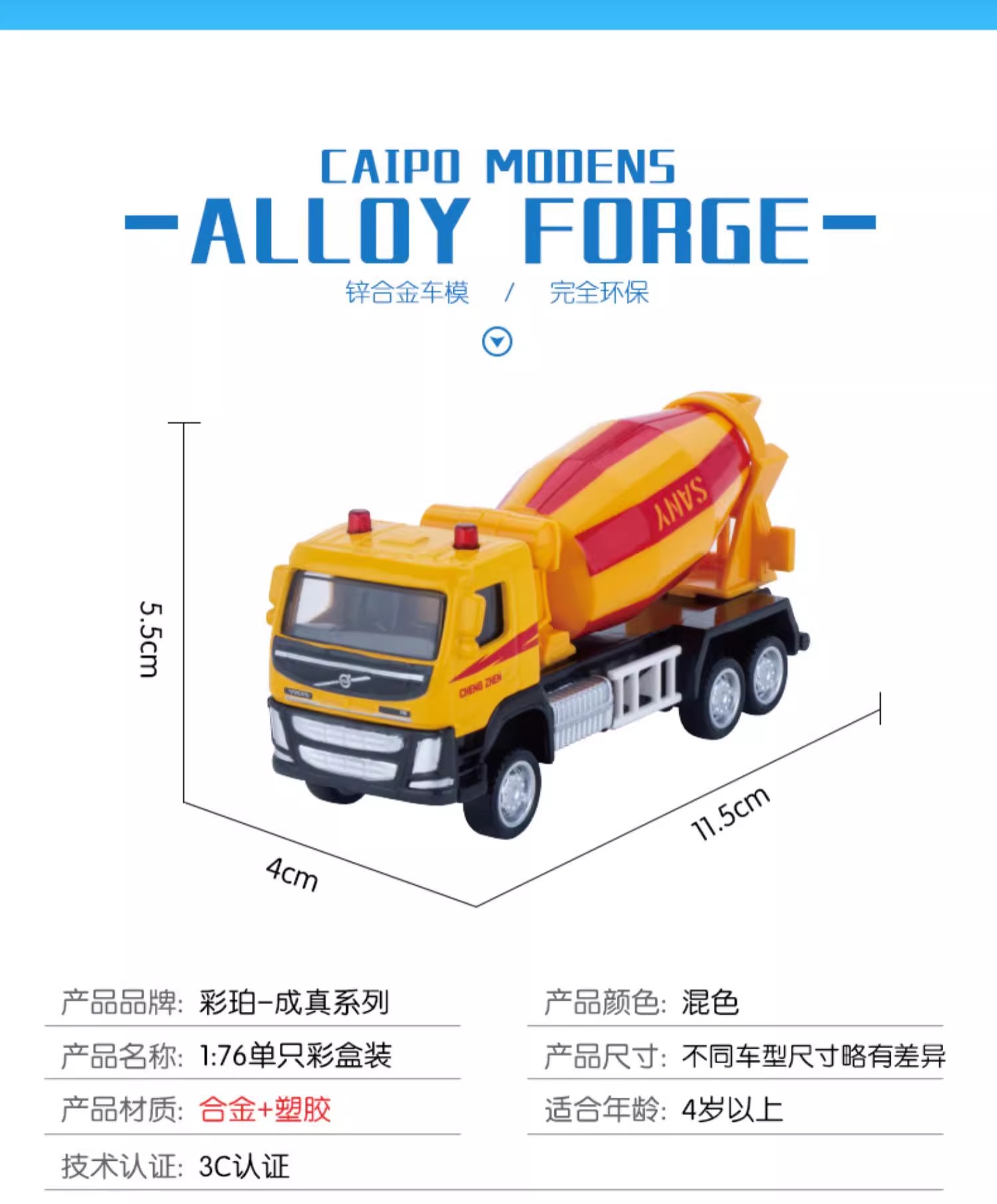 Caipo 1:72 정품 볼보 위생 공학 소방차 시리즈 합금 장난감 자동차 어린이 생일 선물스토어 가기