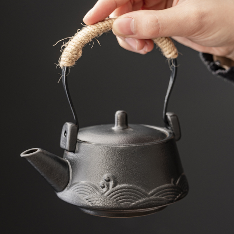 특별 통관 블랙 도자기 우드 사이드 냄비 주전자 찻잔 찻잔 다도 차 항아리 작은 세트 거친 도자기 차 세트