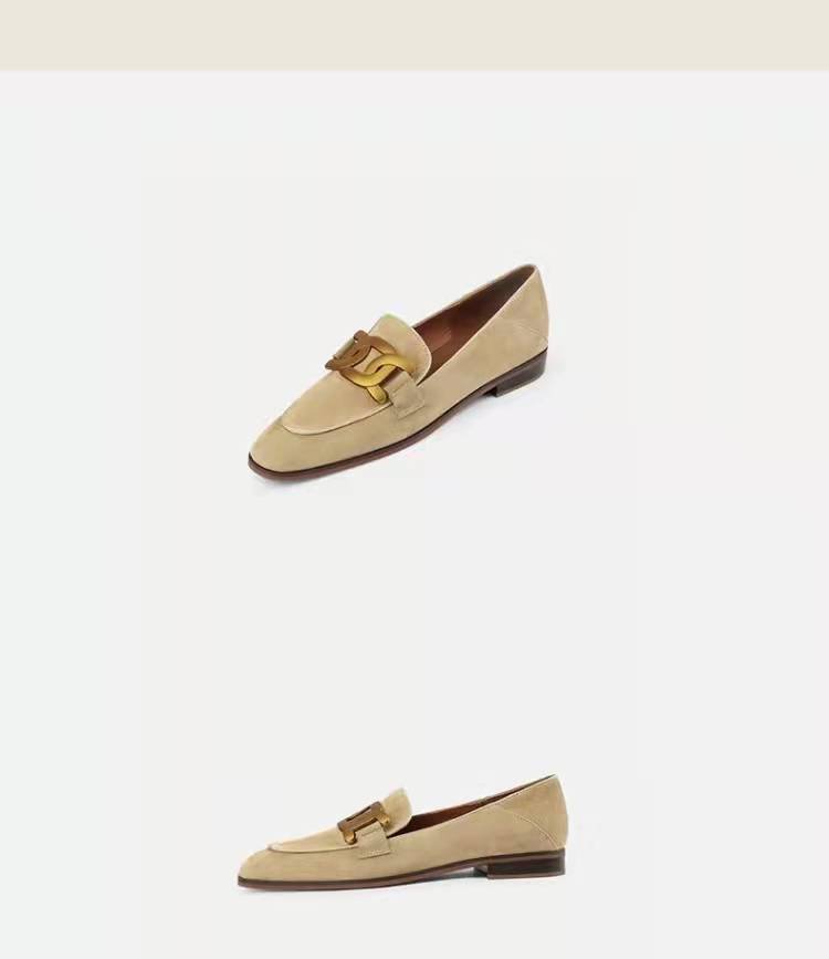 틈새 디자인 센스 두꺼운 프렌치 레트로 영국 스타일의 금속 버클 작은 가죽 신발 여성 플랫 신발 여성용 로퍼 싱글 레이어 신발
