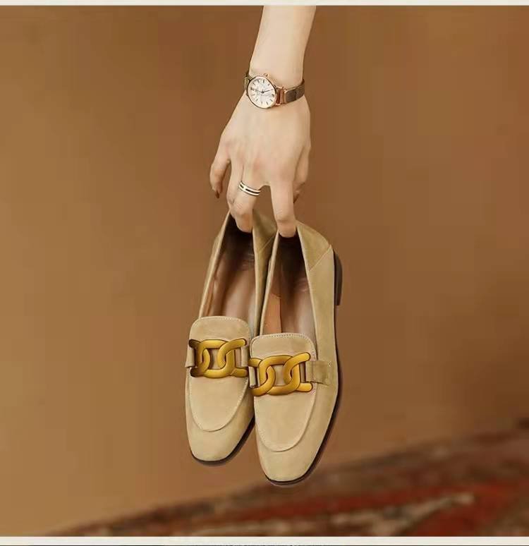 틈새 디자인 센스 두꺼운 프렌치 레트로 영국 스타일의 금속 버클 작은 가죽 신발 여성 플랫 신발 여성용 로퍼 싱글 레이어 신발스토어 가기