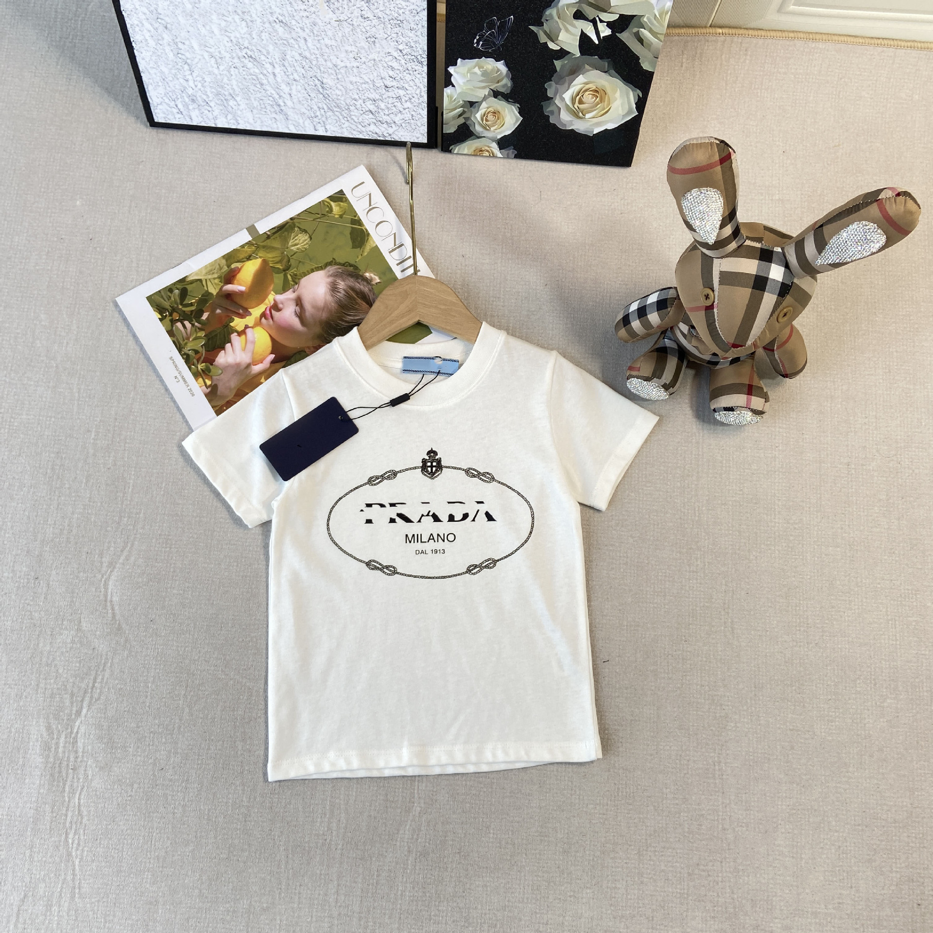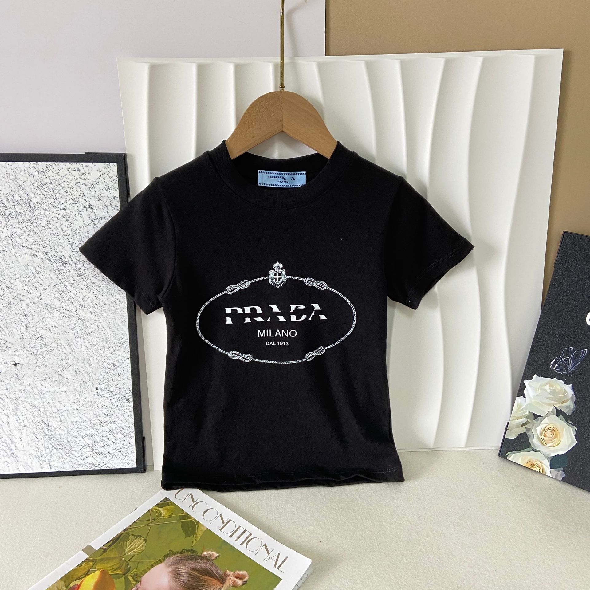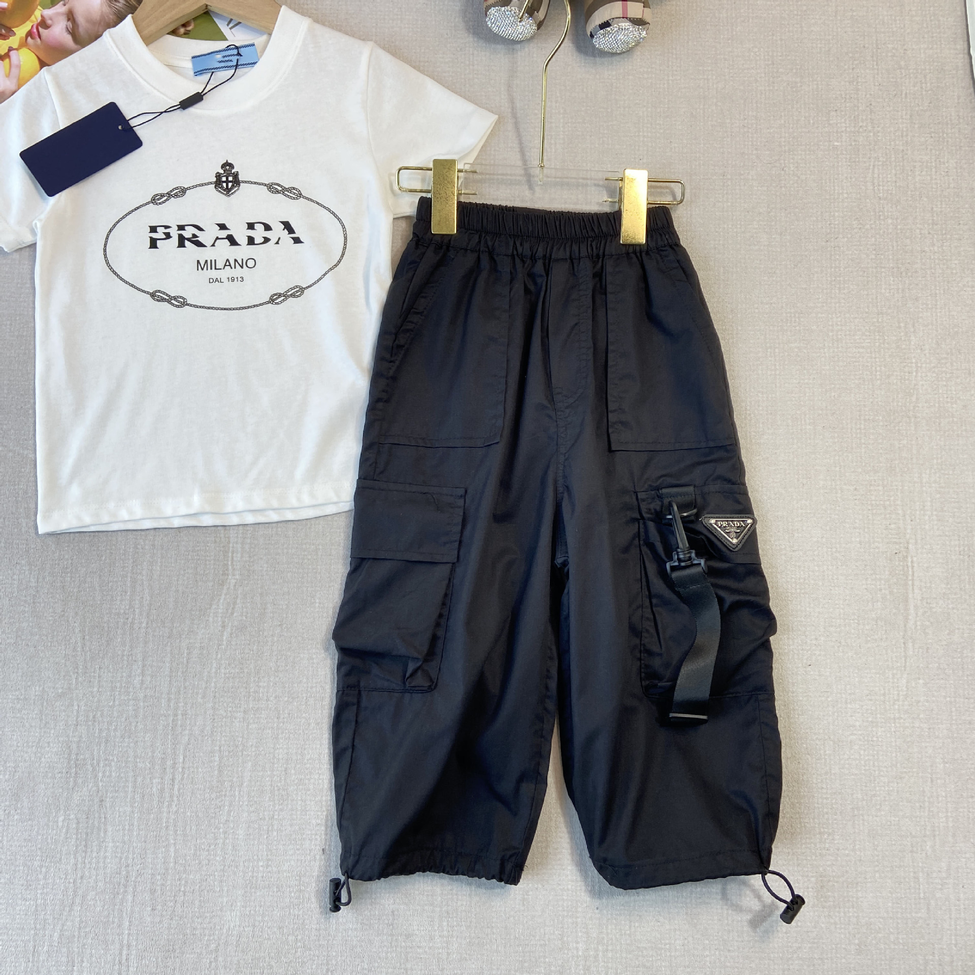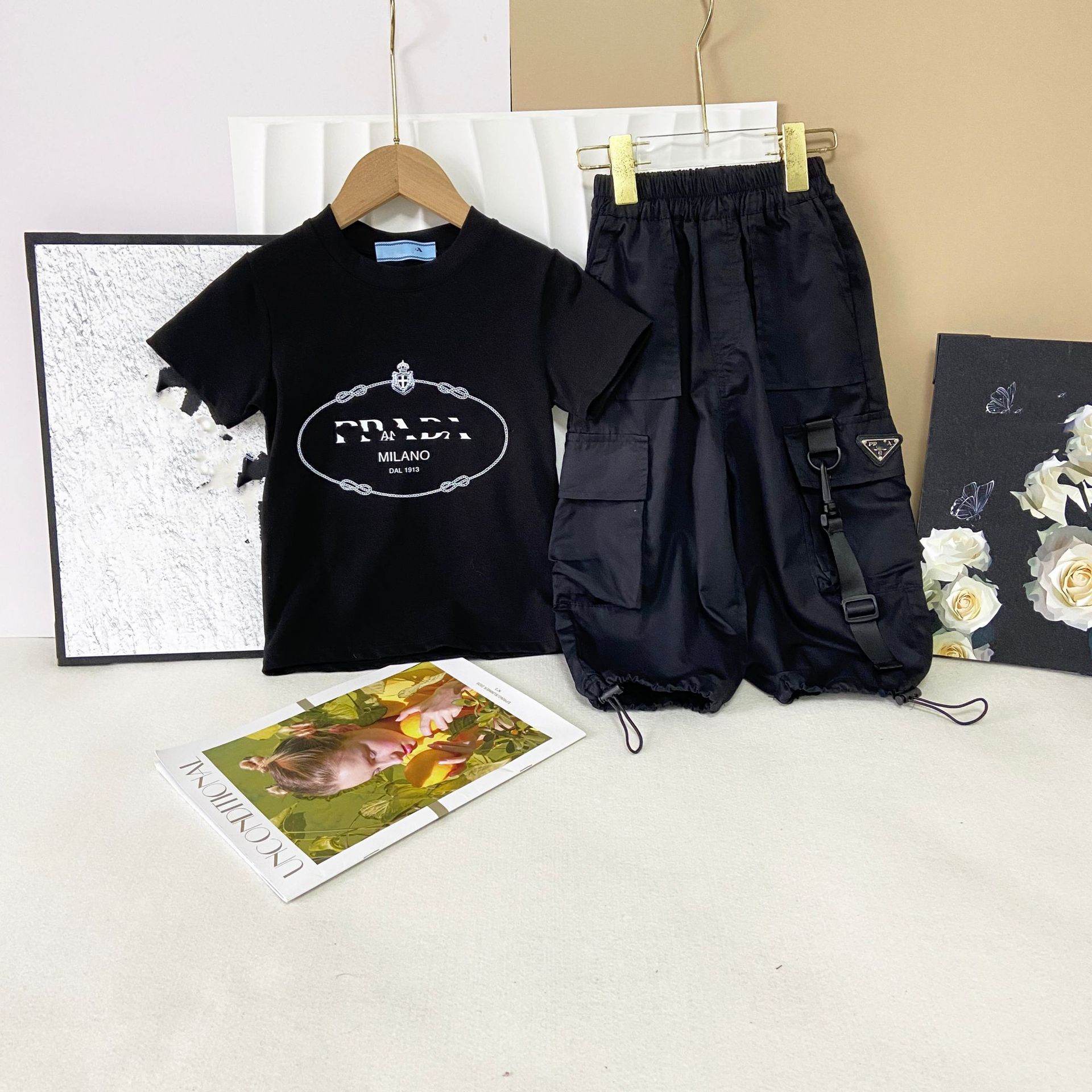 한국판 아동복 형제 자매 소녀 프린트 티셔츠 탑 주름 치마 소년 둥근 목 바지 7 점 바지