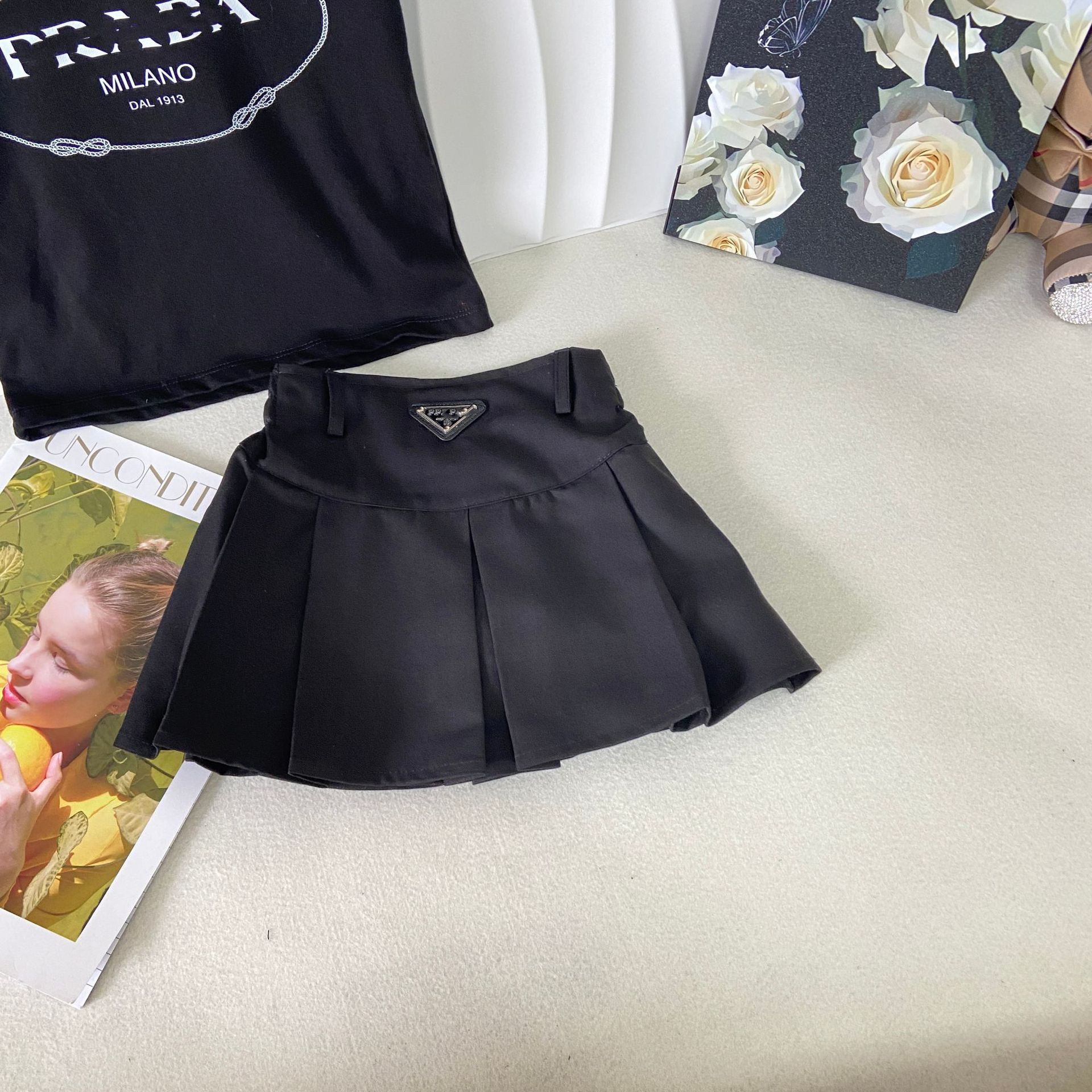 • 블랙 탑 주름 치마