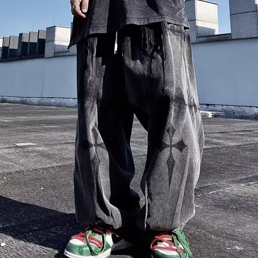 힙합 레트로 하이 스트리트 와이드 레그 디아블로 청바지 남성용 툴링 스트레이트 루즈 대형 레트로 바지스토어 가기