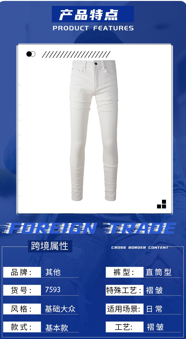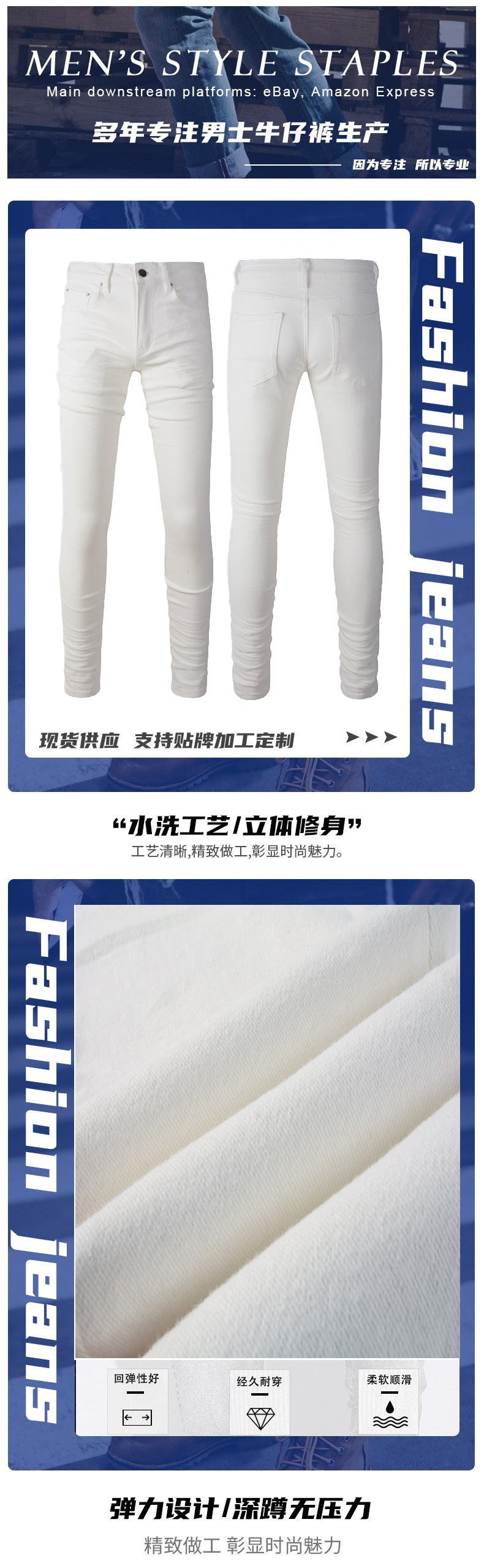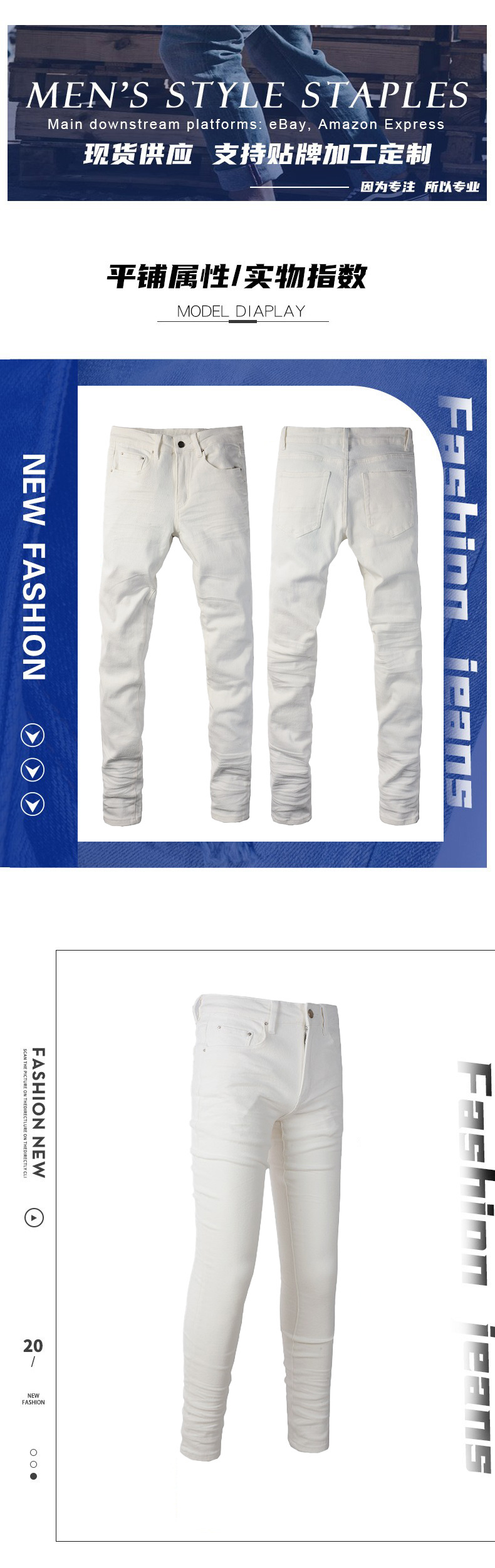 새로운 크로스 보더 화이트 청바지 스트레치 슬림 바지 남성 스팟 머리카락