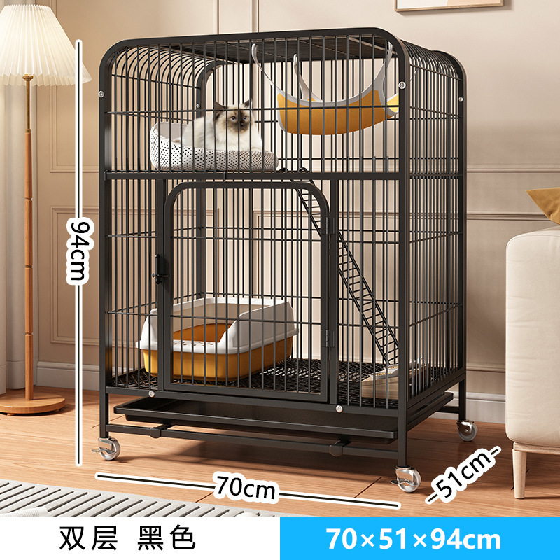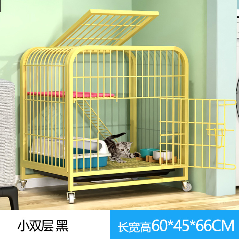 • 블랙 65 # 더블 레이어 사각형 고양이 케이지 (60 × 45 × 66cm)