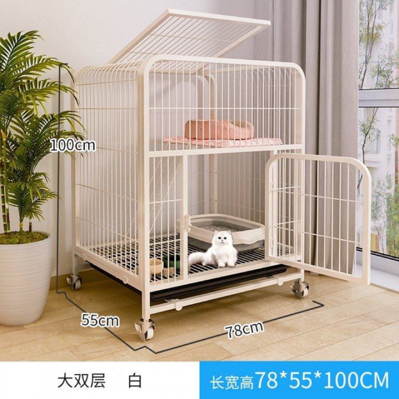 • 화이트 85 # 더블 레이어 사각형 튜브 고양이 케이지 (78 × 55 × 85cm)