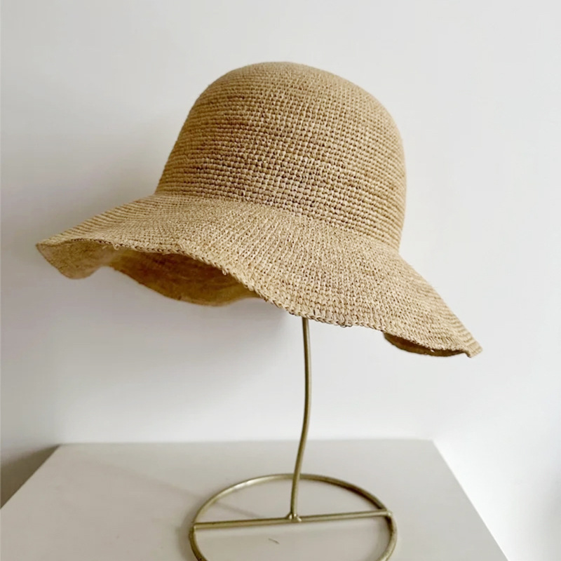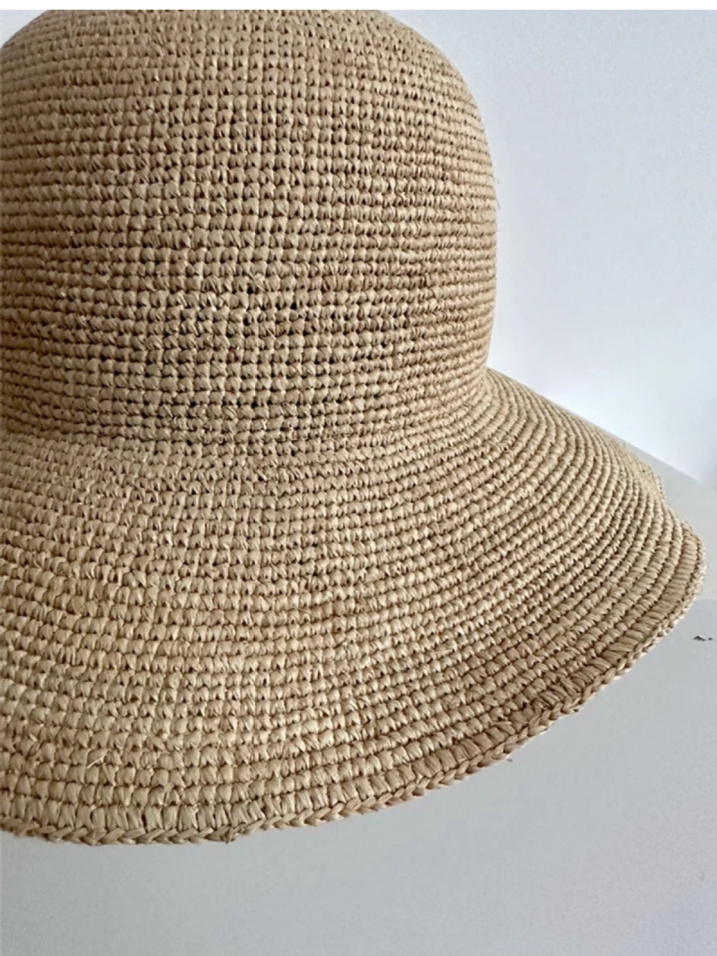 라피트 밀짚 모자 여성 분지 모자 여성의 봄과 여름 양산 모자 고급 수제 크로 셰 뜨개질 밀짚 모자 어부 모자 태양 모자 햇살