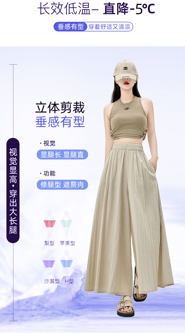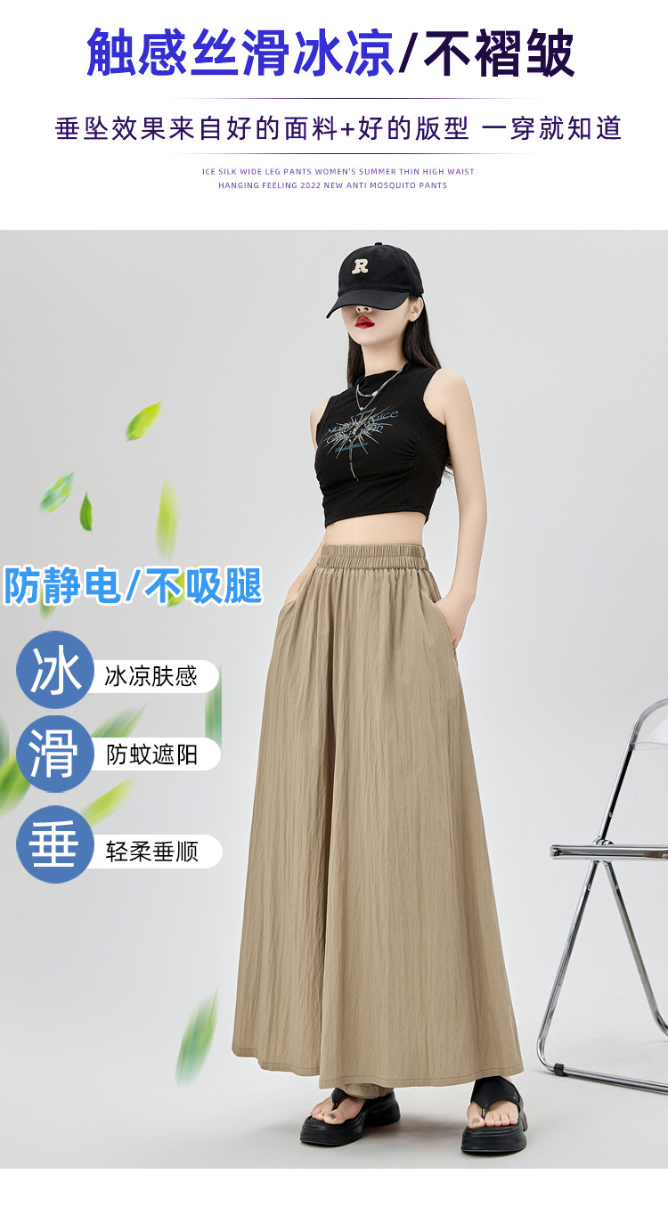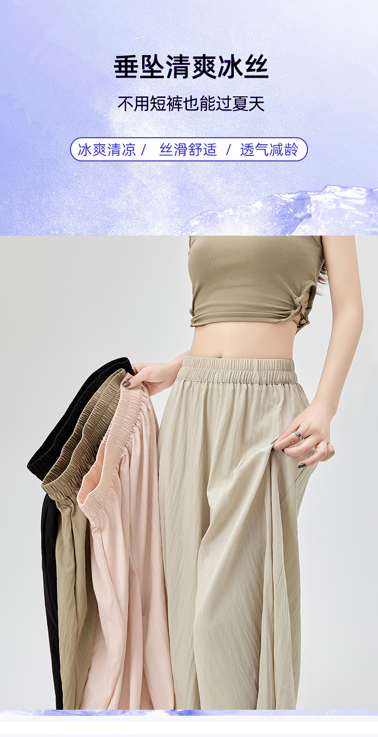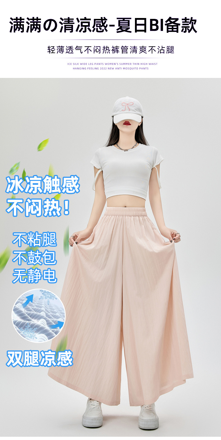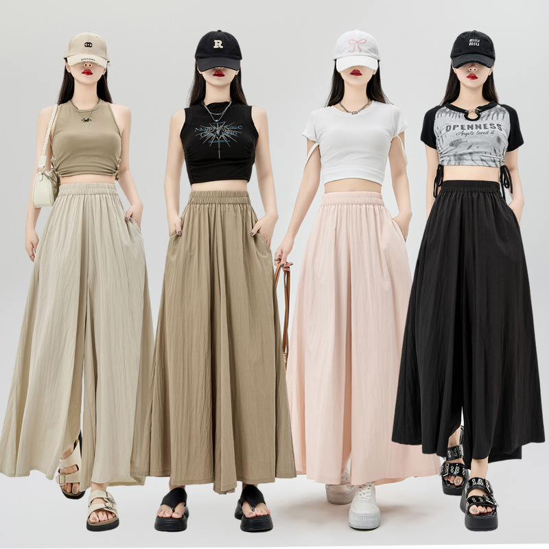 진짜 샷 큰 바지 스커트 여자 여름 2024 새로운 게으른 캐주얼 아이스 실크 넓은 다리 바지 느슨한 야마모토 Culottes