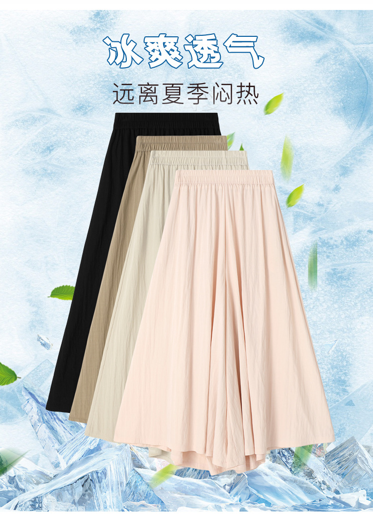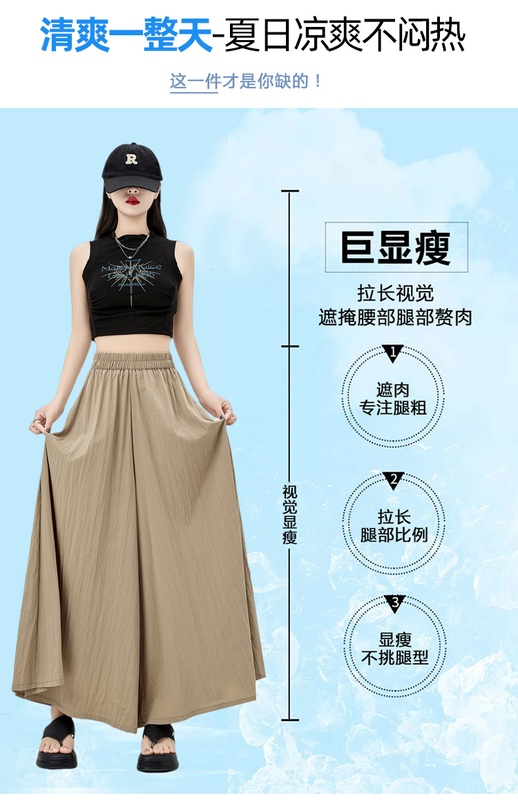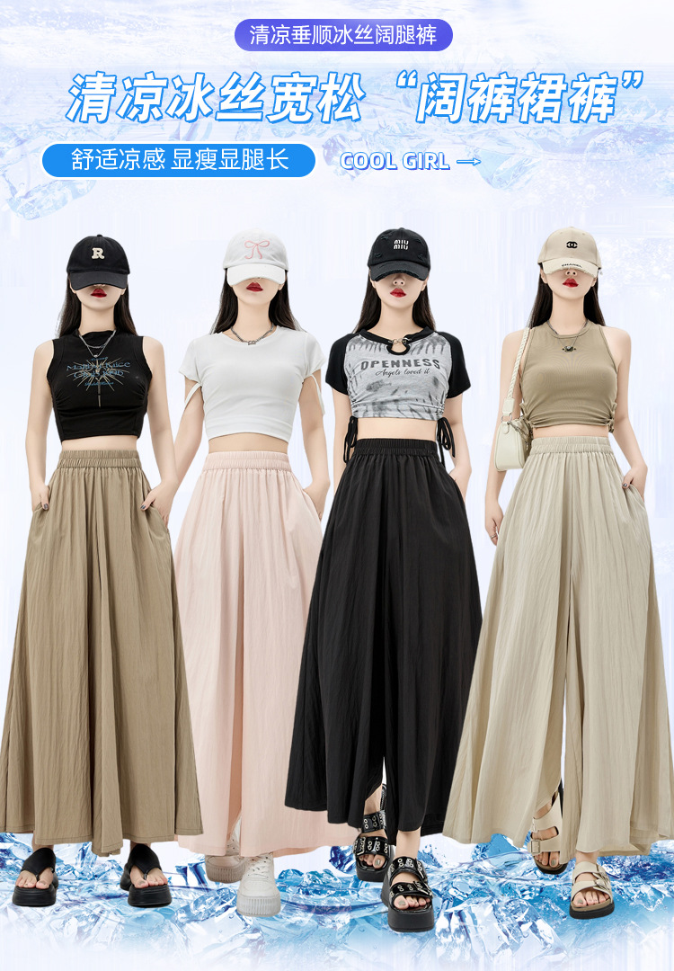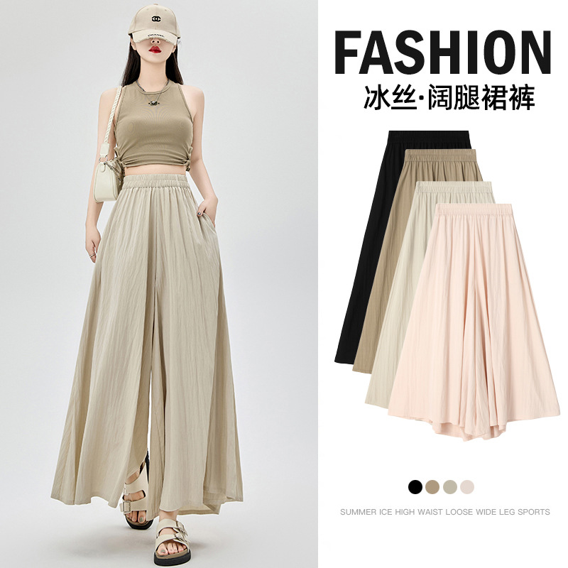 진짜 샷 큰 바지 스커트 여자 여름 2024 새로운 게으른 캐주얼 아이스 실크 넓은 다리 바지 느슨한 야마모토 Culottes스토어 가기