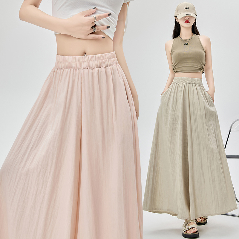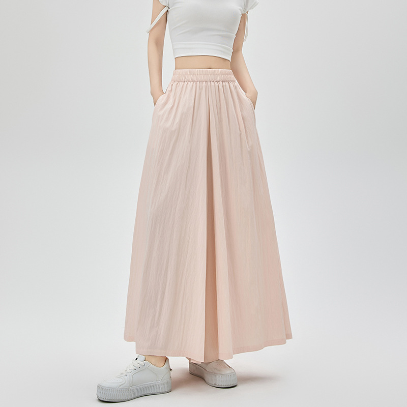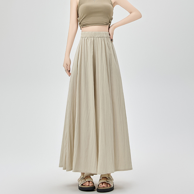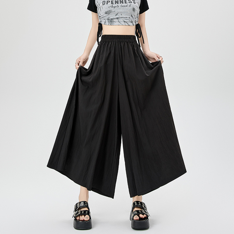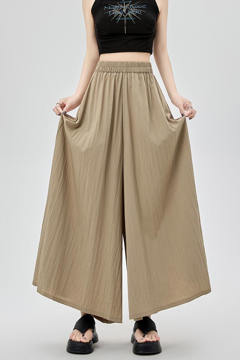 진짜 샷 큰 바지 스커트 여자 여름 2024 새로운 게으른 캐주얼 아이스 실크 넓은 다리 바지 느슨한 야마모토 Culottes스토어 가기
