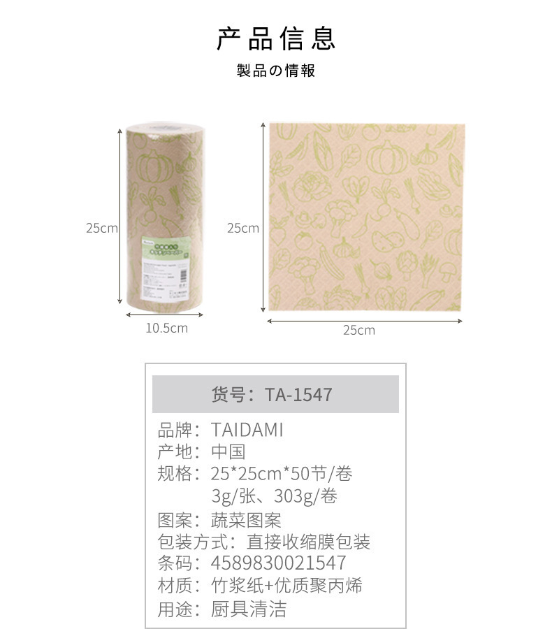 TAIDAMI 일본 식기 세척 수건 대나무 섬유 게으른 사람들을 위한 일회용 식기 세척 천 습식 및 건식 주방 물티슈스토어 가기