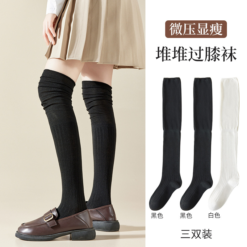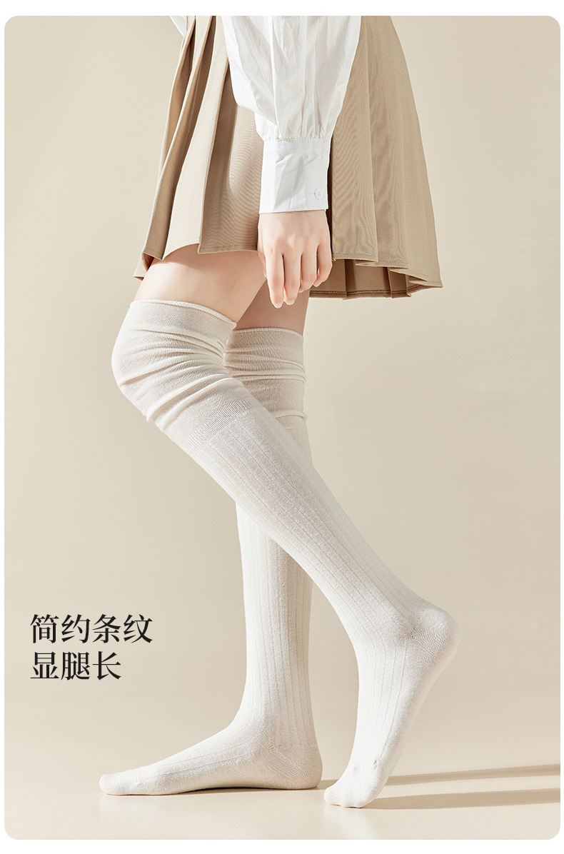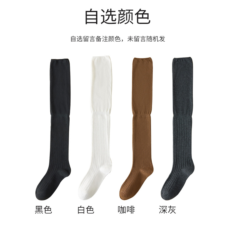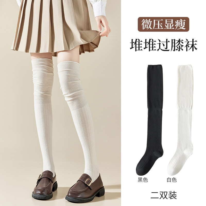 무릎 위 양말 여성의 여름 얇은 흑백 단색 스티칭 긴 튜브 스택 양말 미끄럼 단색 트렌드 올 매치 압축 양말스토어 가기