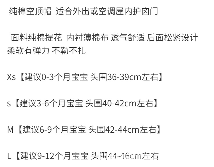 남학생과 여학생을위한 여름 얇은 빈 탑 모자 아기 신생아 에어컨 모자 태아 모자로 할로겐 머리카락을 보호합니다.스토어 가기